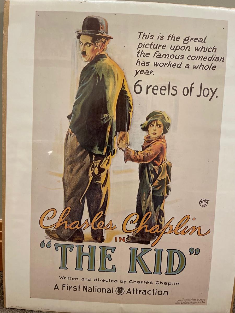 A vintage Charlie Chaplin Movie poster :The Kid" In cellophane wrap.