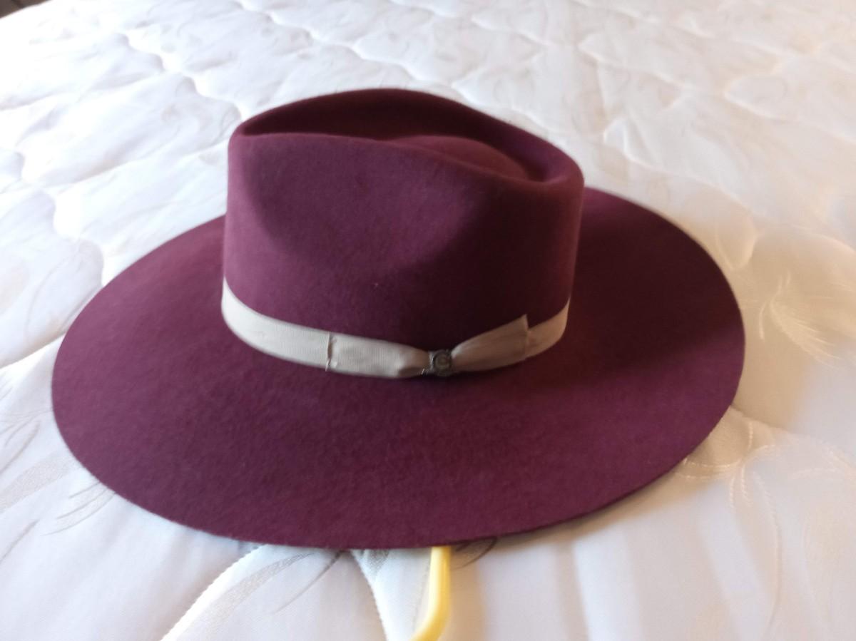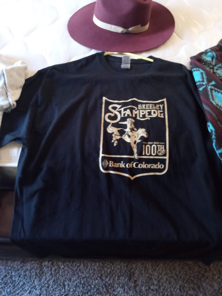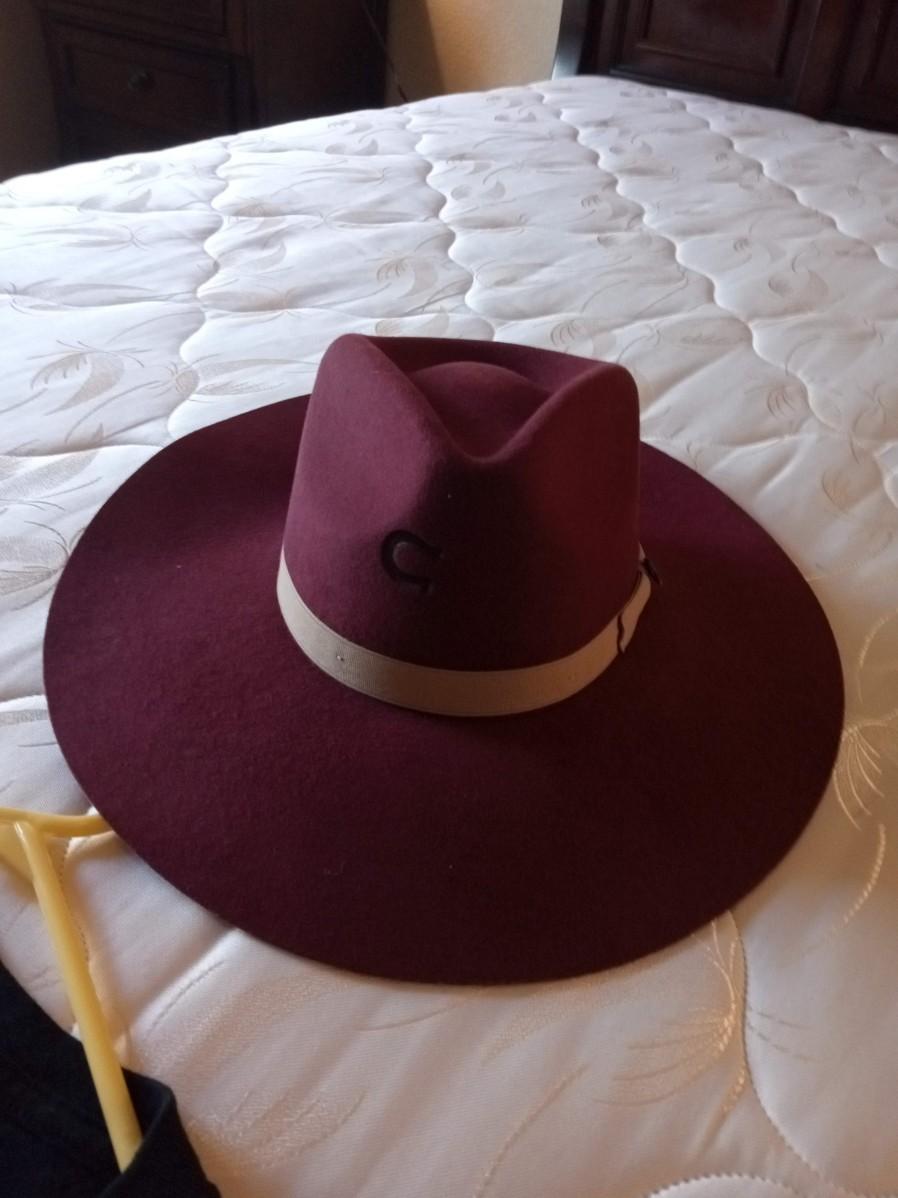 BURGUNDY HAT IS SMALL, THE 2 SHIRTS ON THE OUTSIDES ARE MEDIUM AND THE STAMPEDE SHIRT IS XL