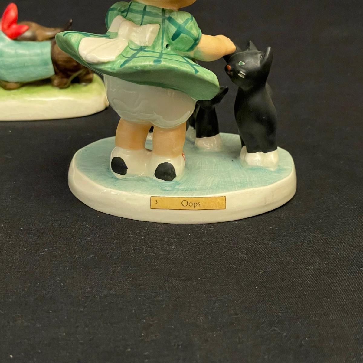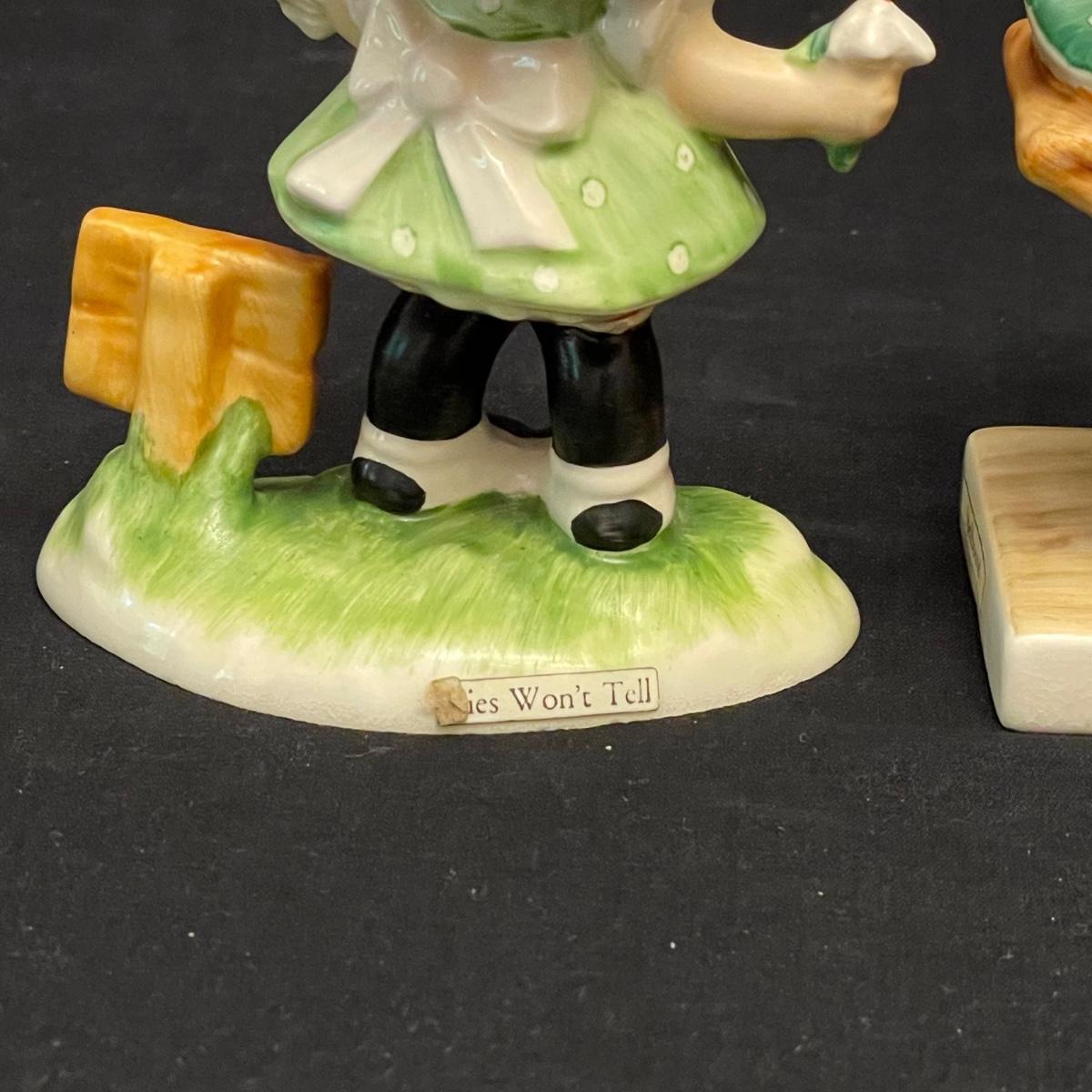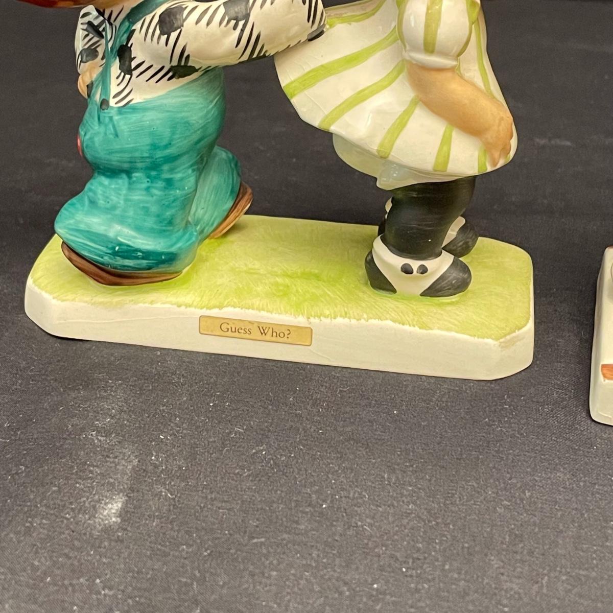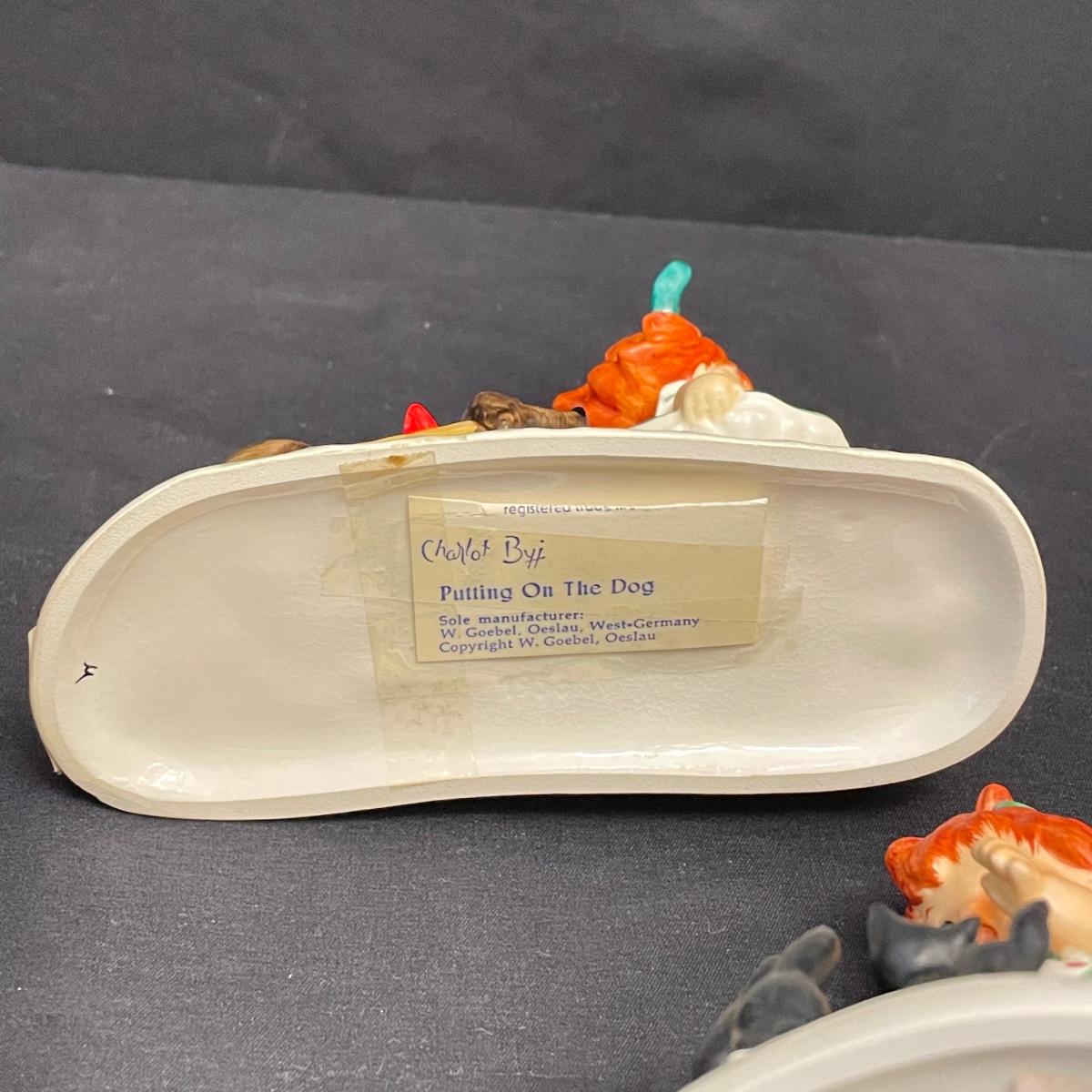 A large selection of Charlot Byj The Red Heads Figurines by Goebel. Lot includes five pieces with a boy/girl duo, 15 single children (some with pets) and one Goebel porcelain sign. The largest piece is the two kids on a bench titled “Let it Rain”, it measures 6.25” x 3” x 6.25”H. See images, there is crazing present on some items. No known blemishes, please come to preview to inspect in person. Shipping available.