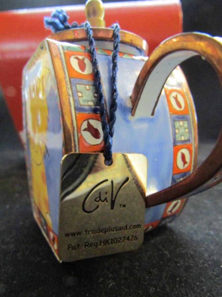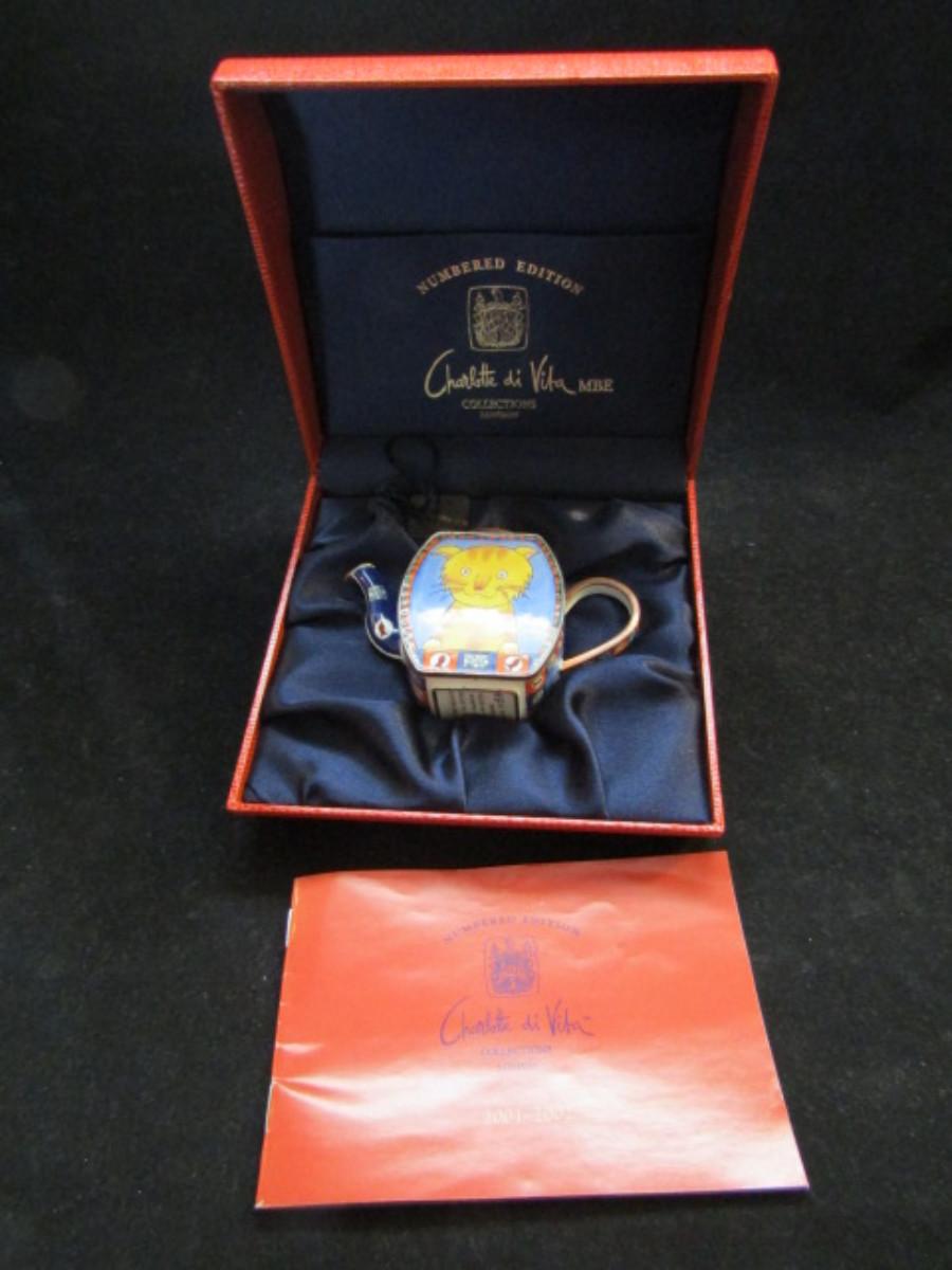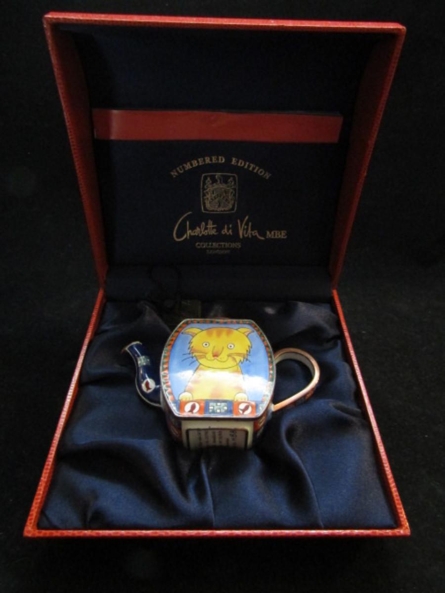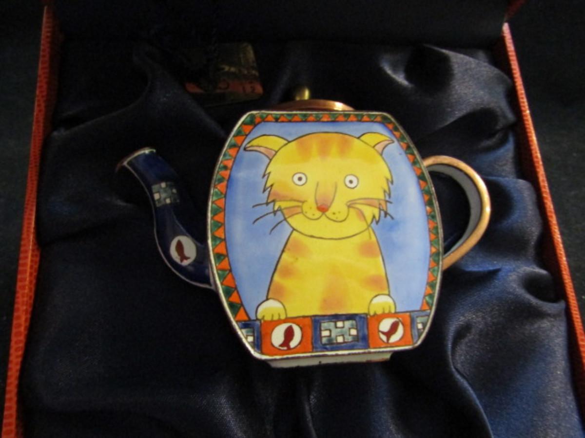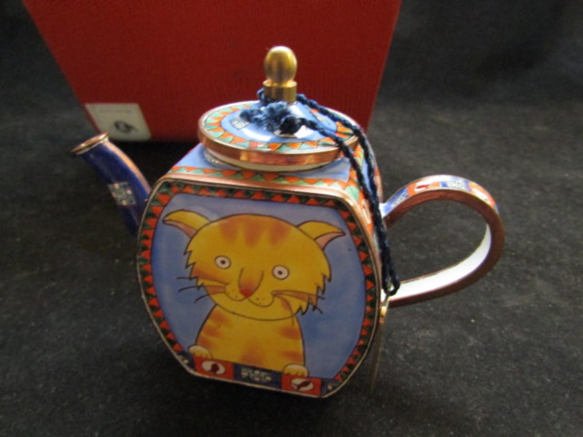 Charlotte Di Vita Miniature Enamel Teapot- Marmalade (Cat)- Limited Edition and Numbered (#160)
