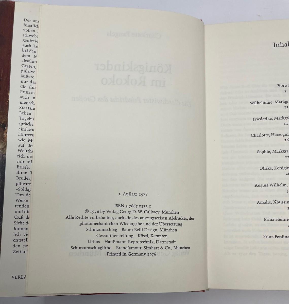 Description: Charlotte Pangels. Konigskinder im Rokoko Die Geschwister Friedrichs Des Grossen. Auflage 1978. Printed in Germany 1976. Material: Paper