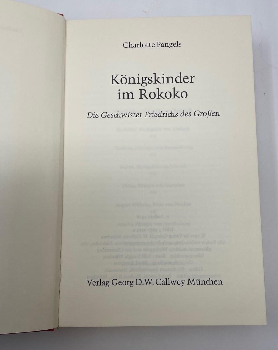 Charlotte Pangels. Konigskinder im Rokoko Die Geschwister Friedrichs Des Grossen. Auflage 1978.