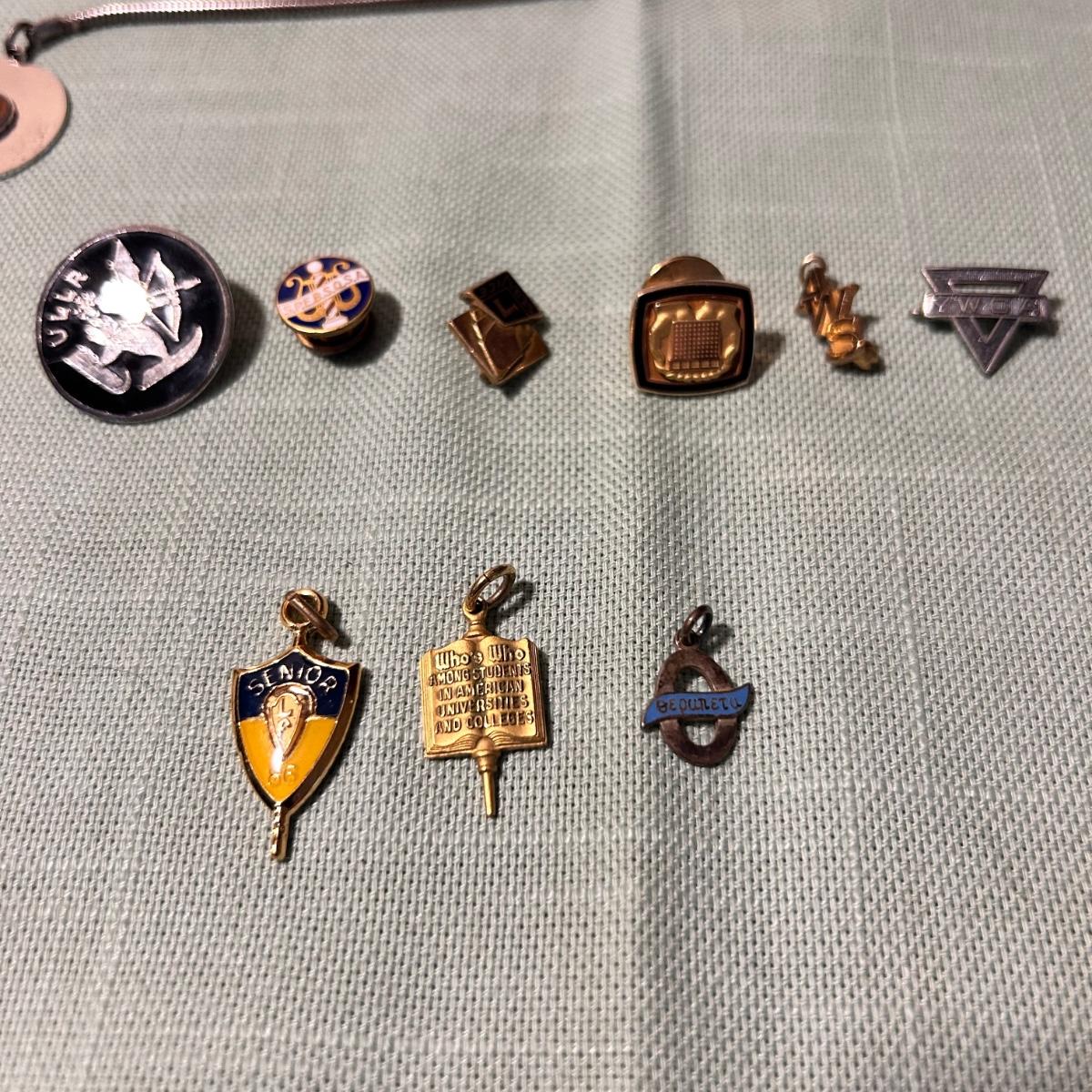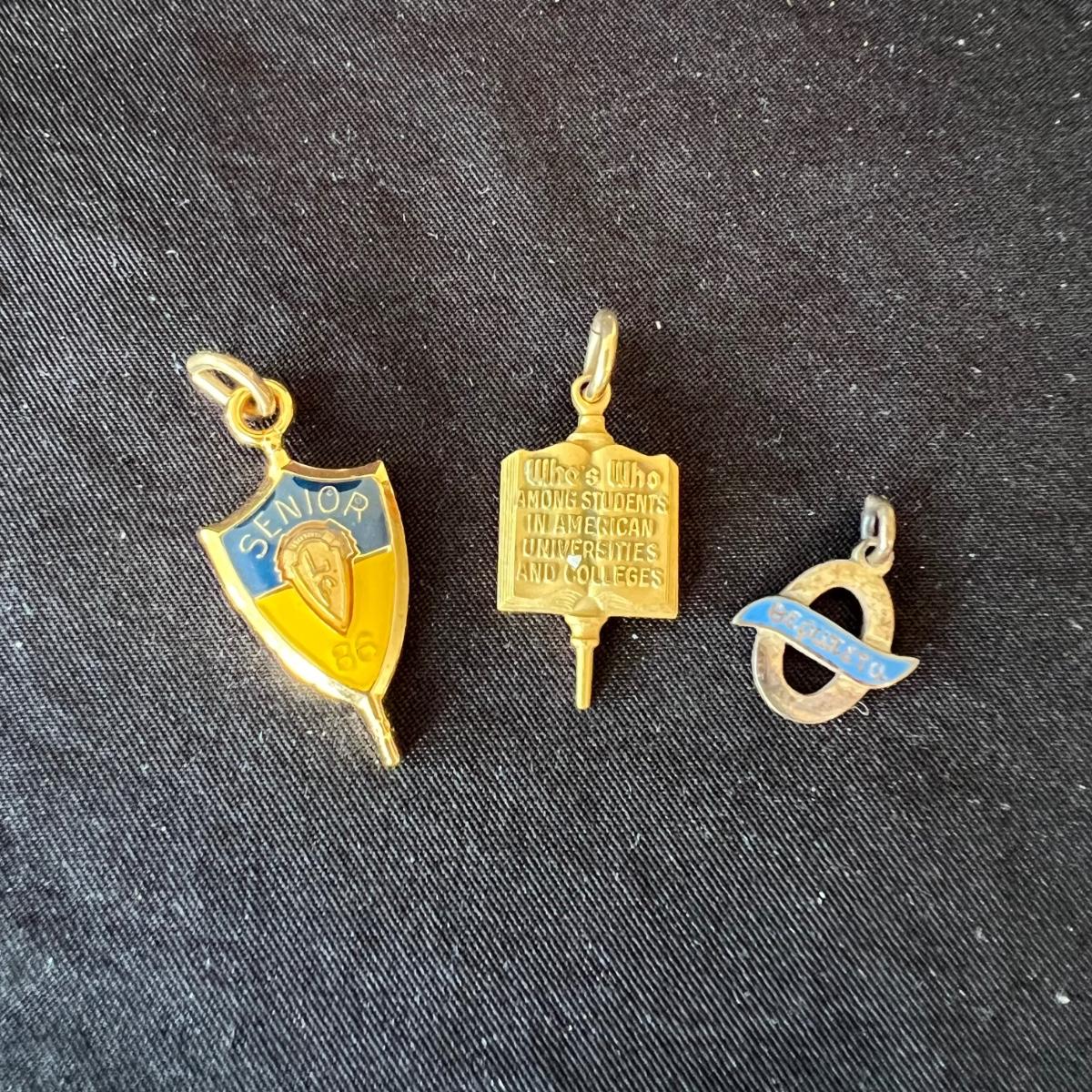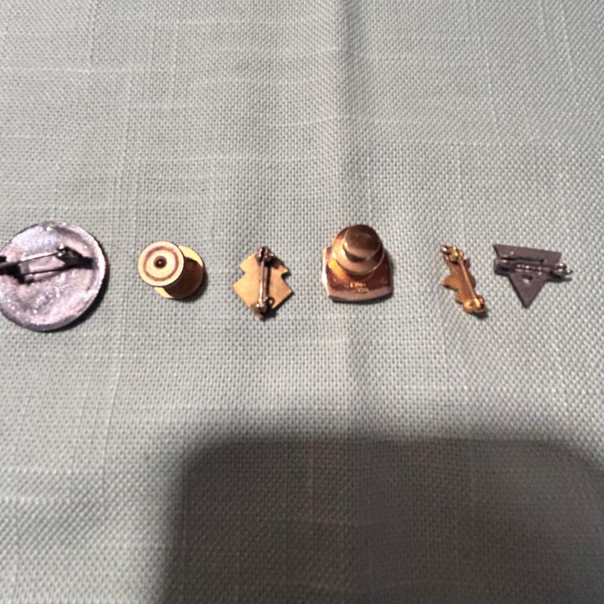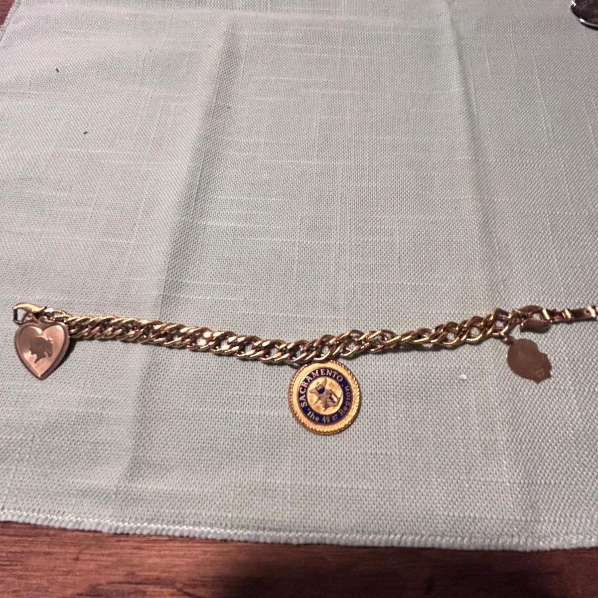 Three charm bracelets, six pins and three pendants in this lot. One 14k pin, a sterling vintage YMCA pin, the gold colored bracelet with charms is Monet and has one 14k pendant, the silver charm bracelet with many charms has a few. Sterling pendants. See pix for details. Shipping available.