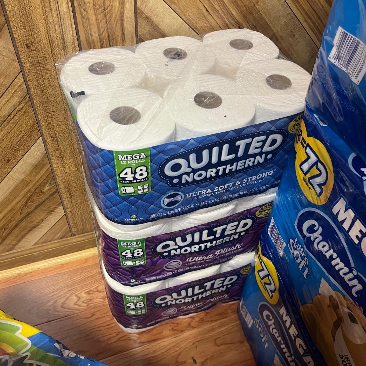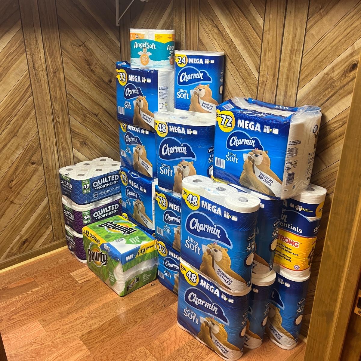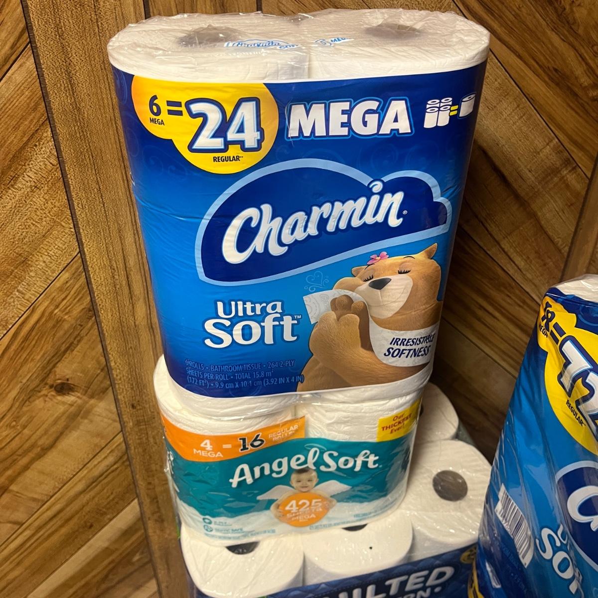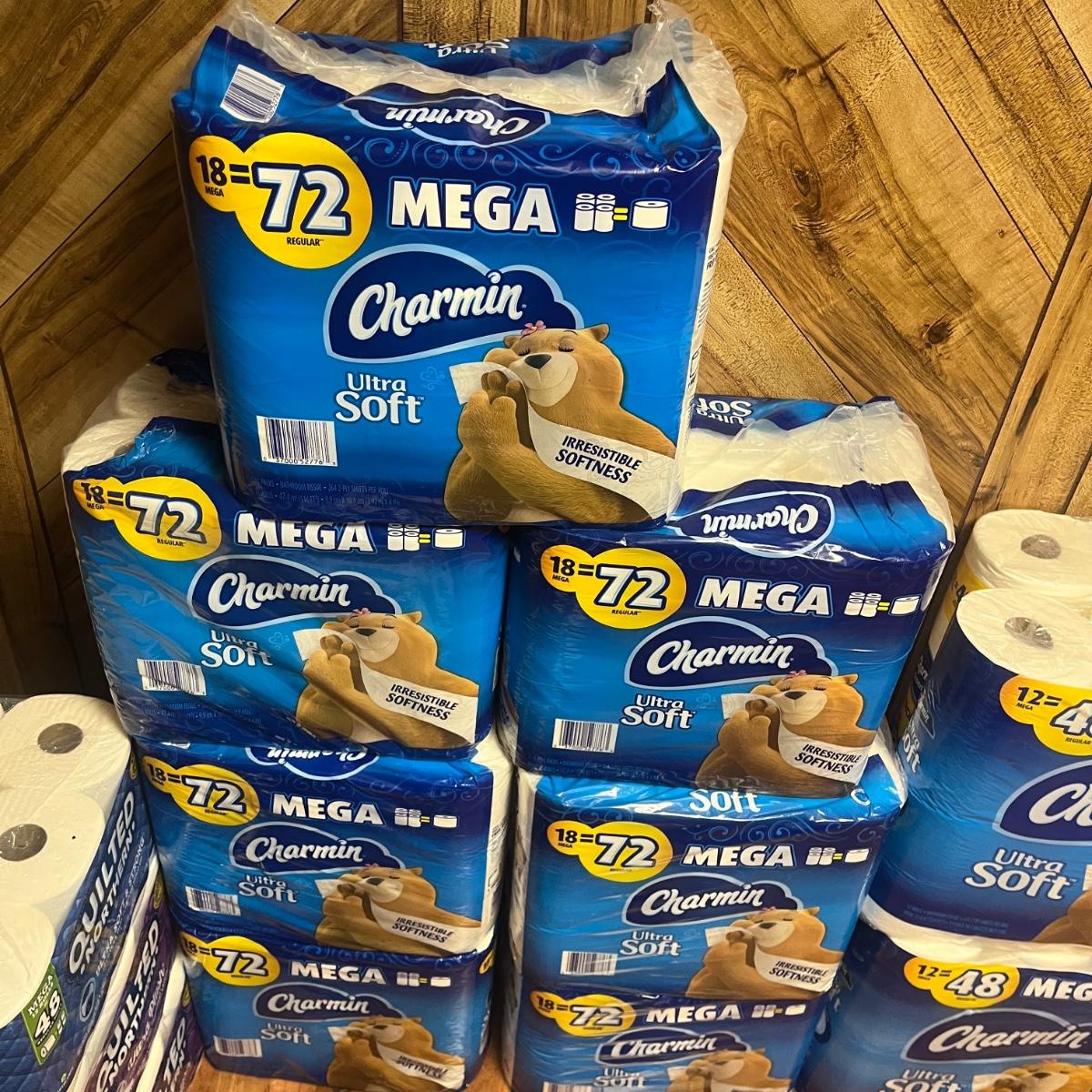 Lot includes new-in-packaging packs of Charmin, Northern and Angel Soft toilet paper that adds up to about 244 rolls and six rolls of Bounty paper towels.