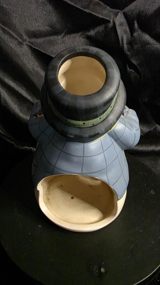 Hand-painted details, softly textured shading, and a cozy color palette create a classic country-Christmas aesthetic perfect for farmhouse décor, rustic holiday themes, or those who simply adore snowman collectibles. The removable top section reveals a hollow interior, making it not only decorative but also useful for storing small treats, ornaments, potpourri, or seasonal surprises.