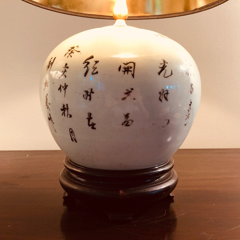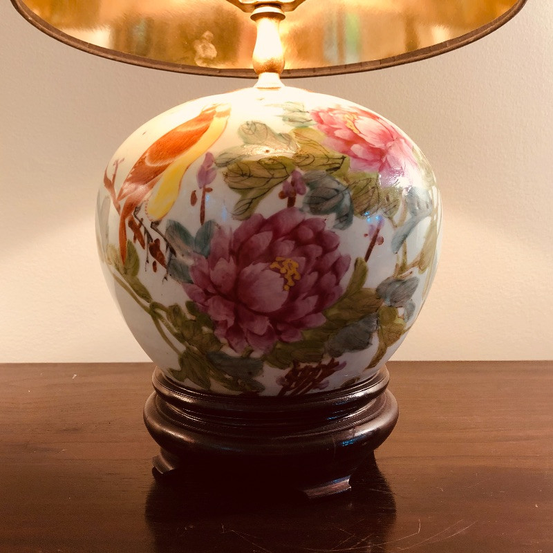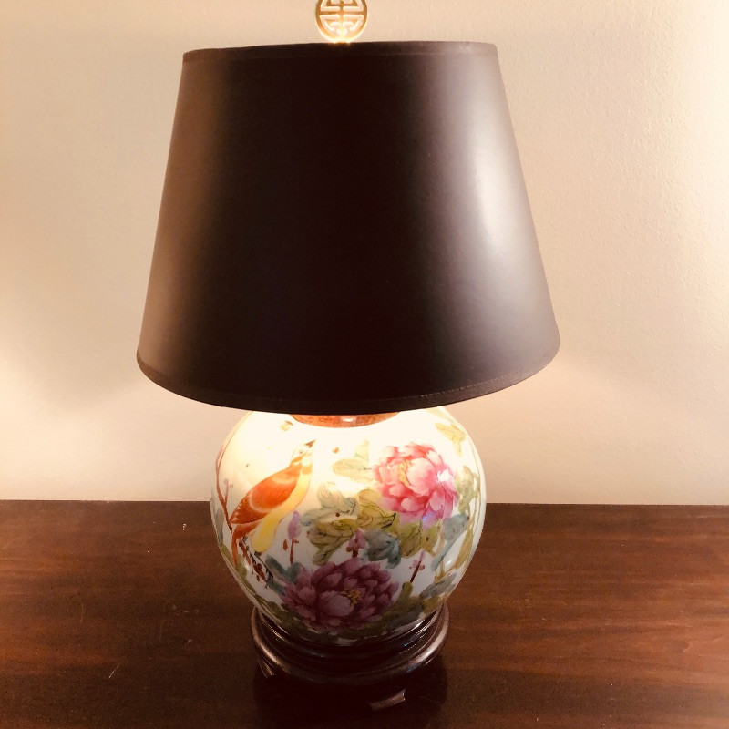 This is a single lamp, well signed in lovely condition. The shade is black with a gold lining.