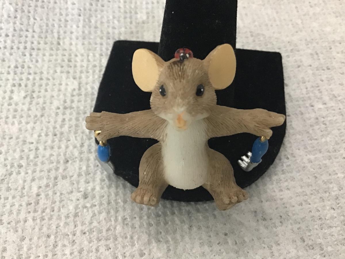 CHARMING TAILS Leaf & Ladybug ? Club 2002 Brooch Lapel Pin Garden Mouse