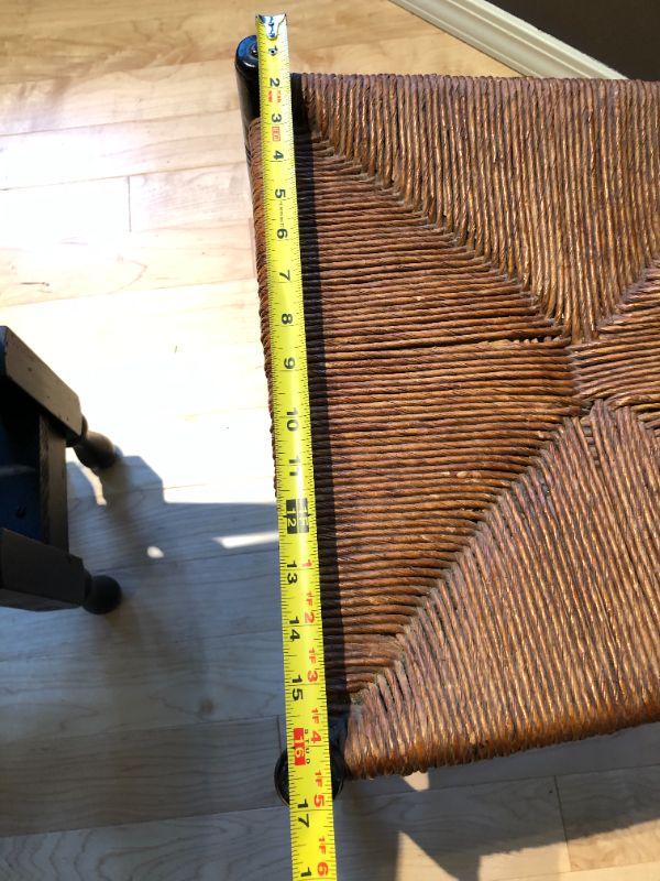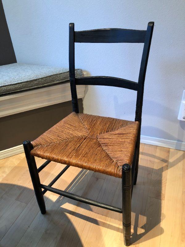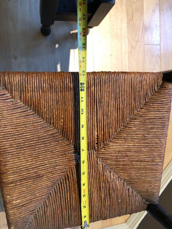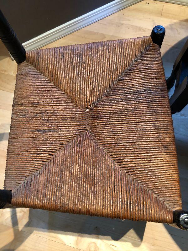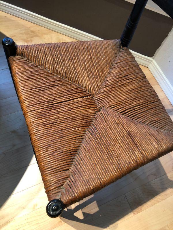 Charming Vintage Foldable Dark Wood Table and Two Wicker Chairs 36 Inch Round