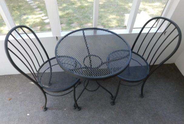 Charming Wrought Iron 3pc Bistro Patio Set includes 24" Diameter Table very stable and clean