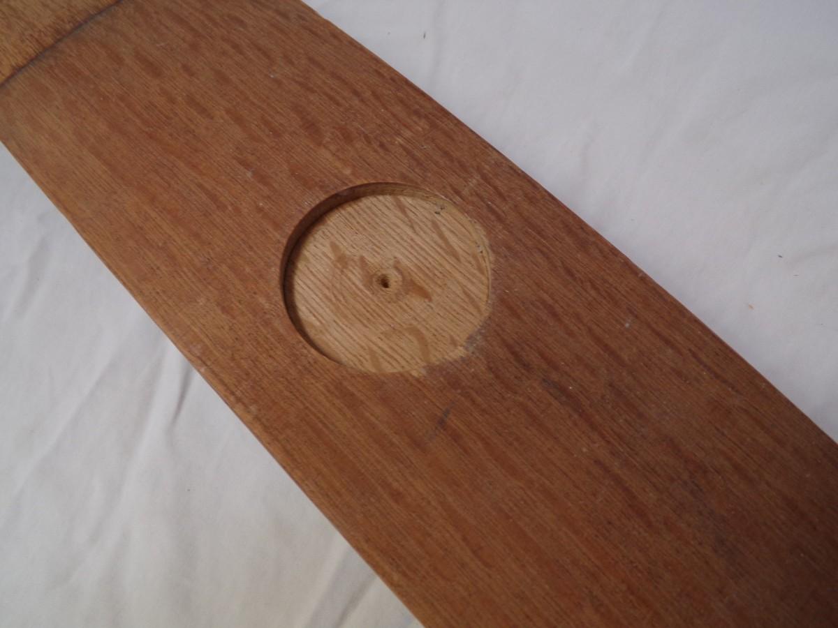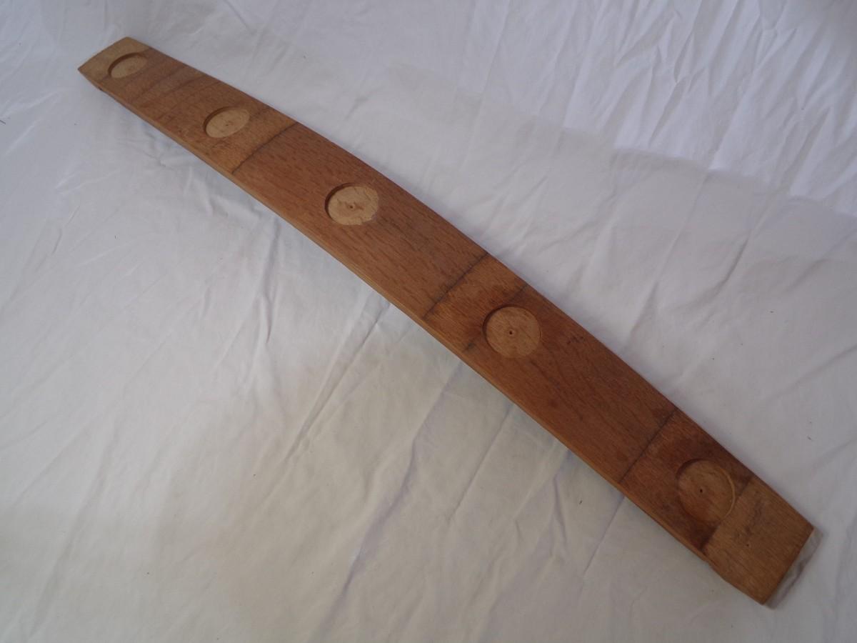 Charred barrel stay candle holder for 5 votive candles, about 35" long