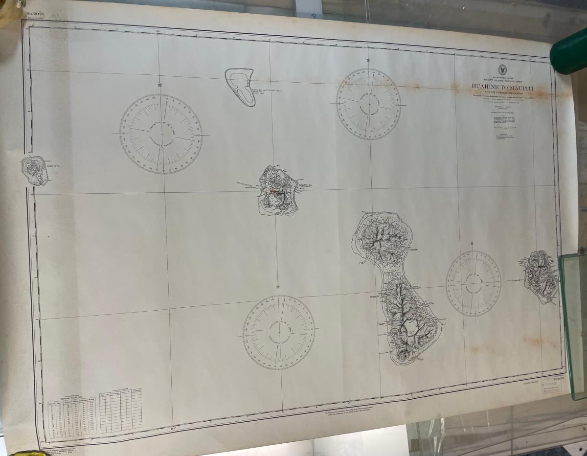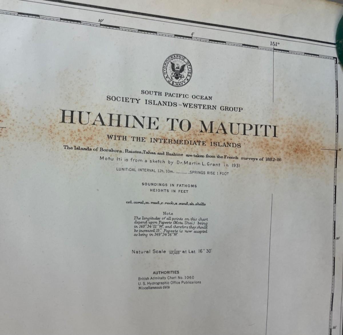 Description: CHART: South Pacific Ocean / SOCIETY ISLANDS - WESTERN GROUP/ HUAHINE TO MAUPITI With the intermediate islands. Measurement approximate: 28 x 42 Inches