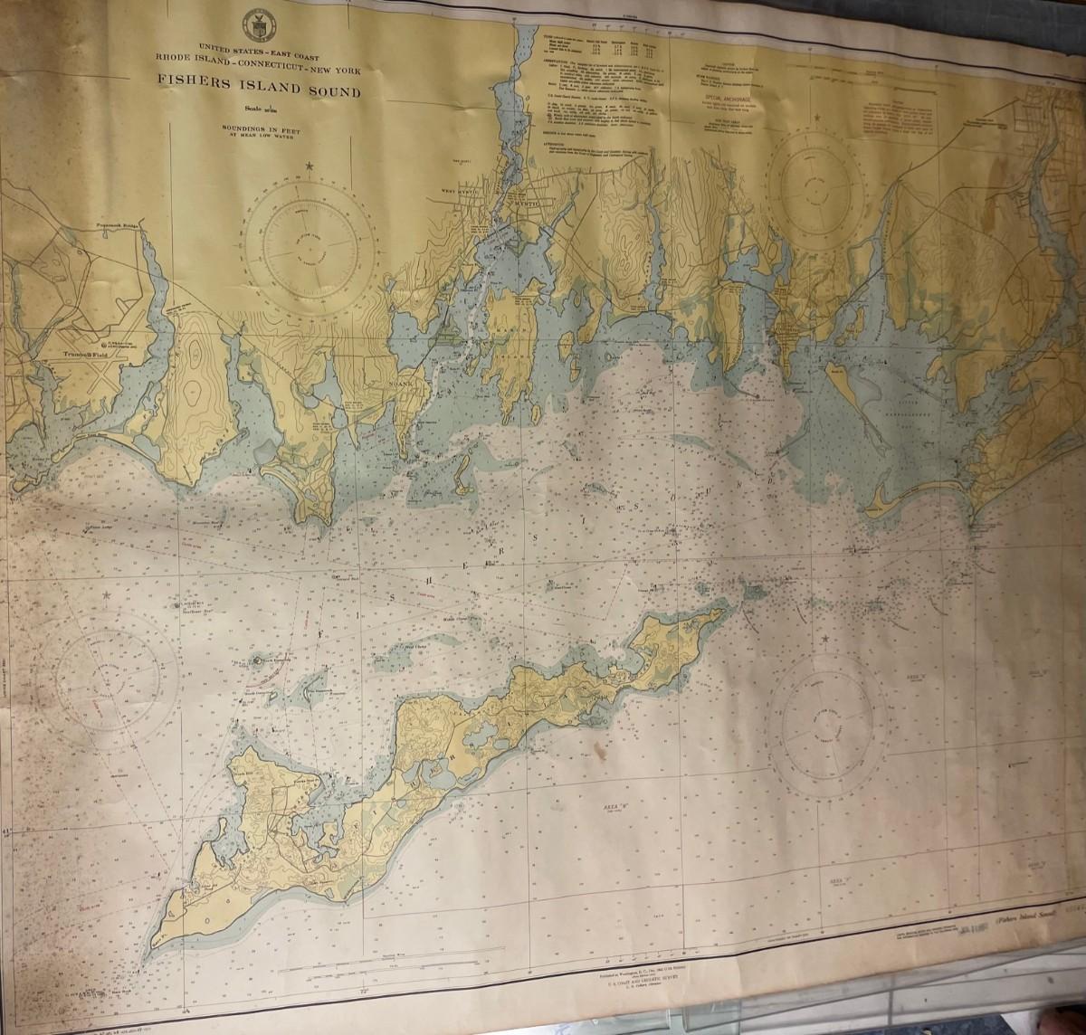Description: CHART: UNITED STATES - EAST COAST/ RHODE ISLAND - CONNECTICUT - NEW YORK/ Fishers Island Sound. Measurement approximate: 34 x 42