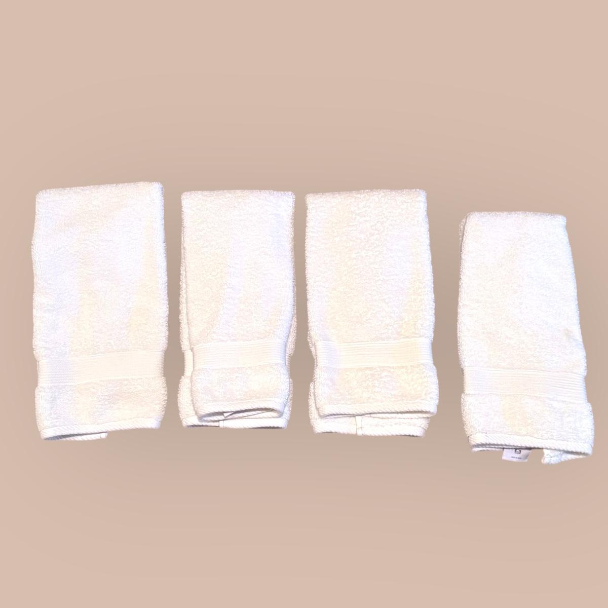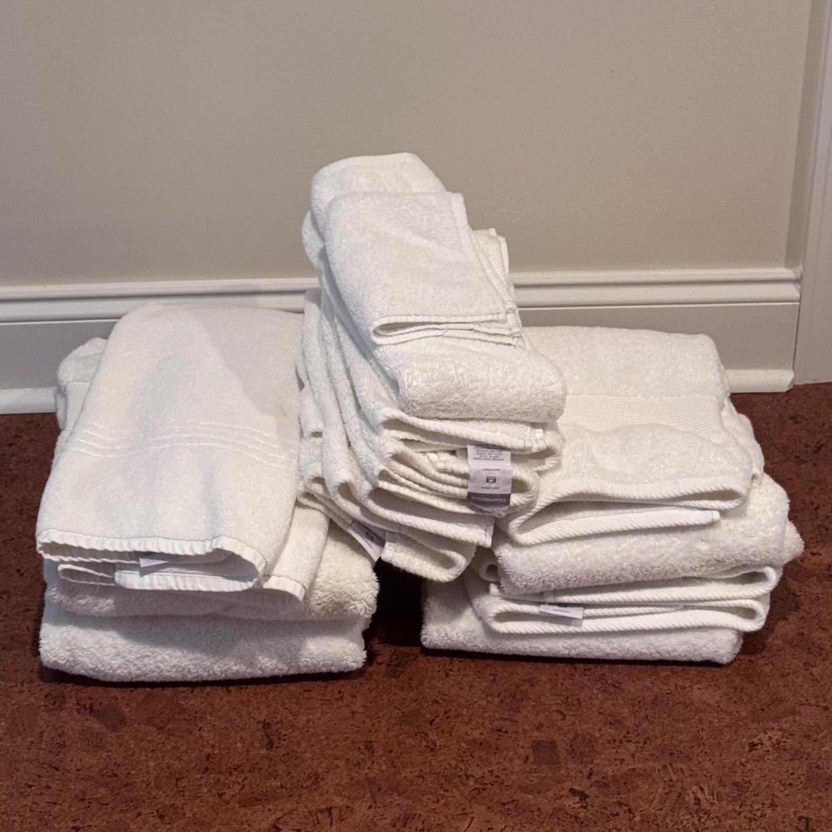 This lot of Charter Club towels includes four hand towels, four washcloths, four bath towels, and one floor towel. All towels are 100% cotton. The bath towels individually measure 51” x 27.5”. Shipping available.