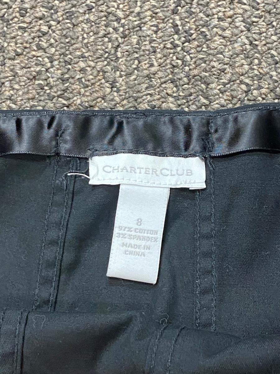 Charter Club Black Pleated Knee Length Skirt with Belt. In good condition. Size 8.