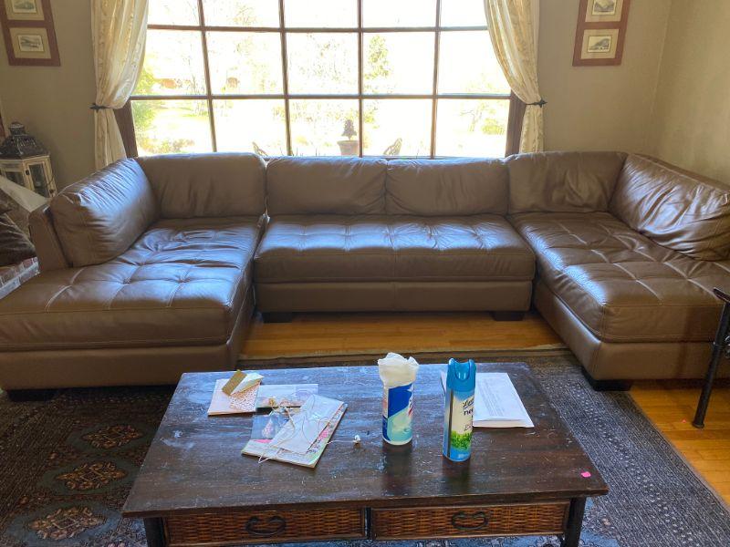 Chateau Brown Leather Couch Very Good Condition. Three separate pieces. U shaped configuration