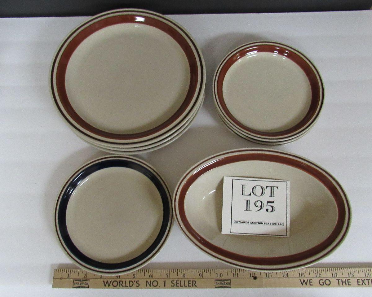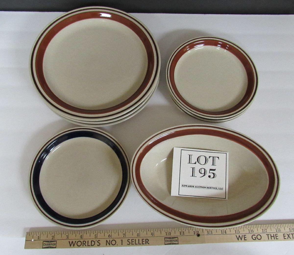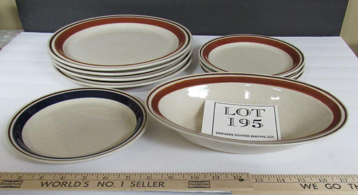 4 7 1/2" plates, 4 10 1/2" plates, and oval vegetable bowl. The dinner plates have minor use wear. Too heavy to ship.