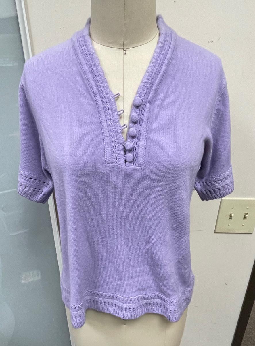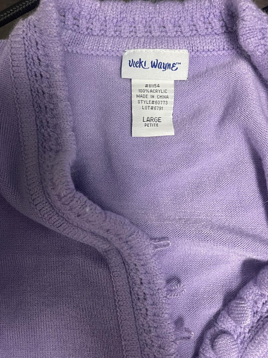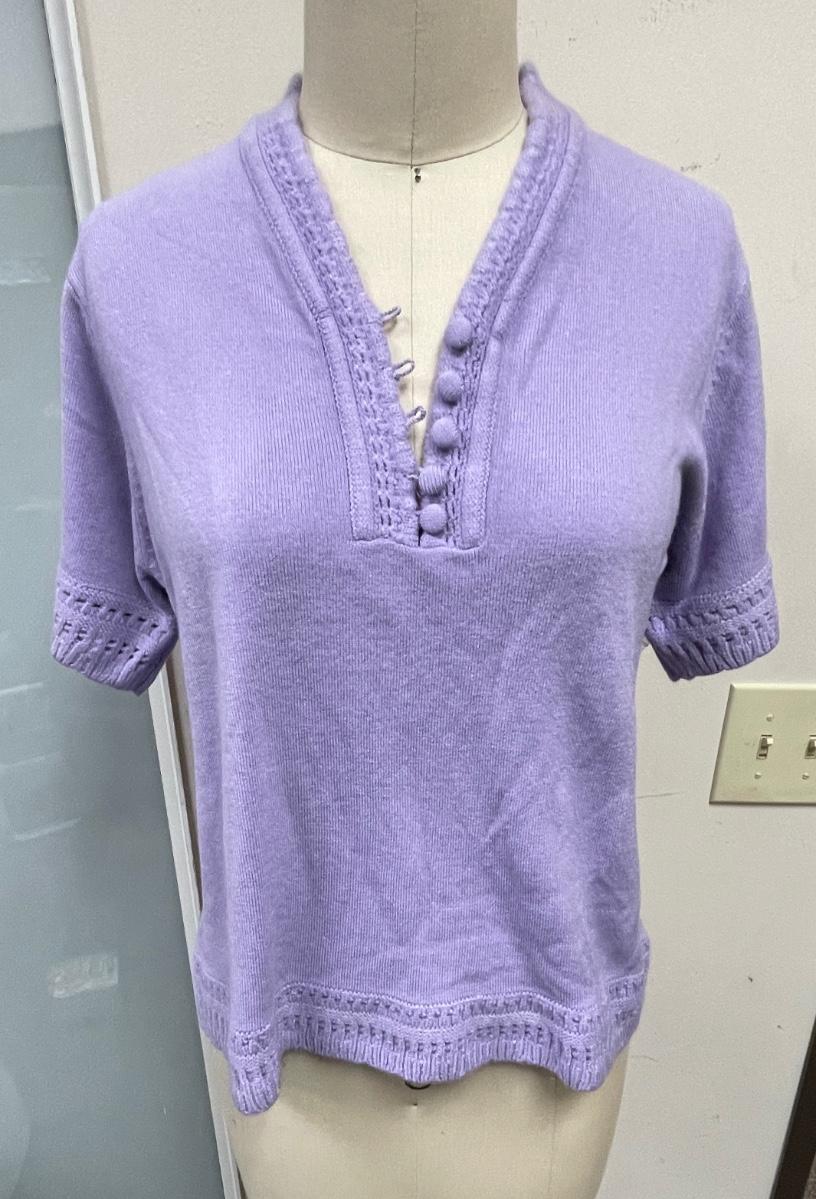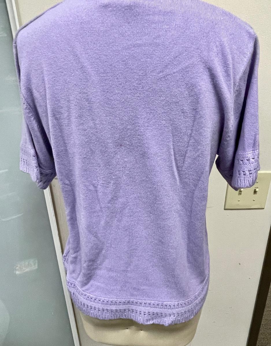 Vicki Wayne Vintage V-neck Lavender 100% Acrylic Short Sleeve Sweater size Petite Large PL