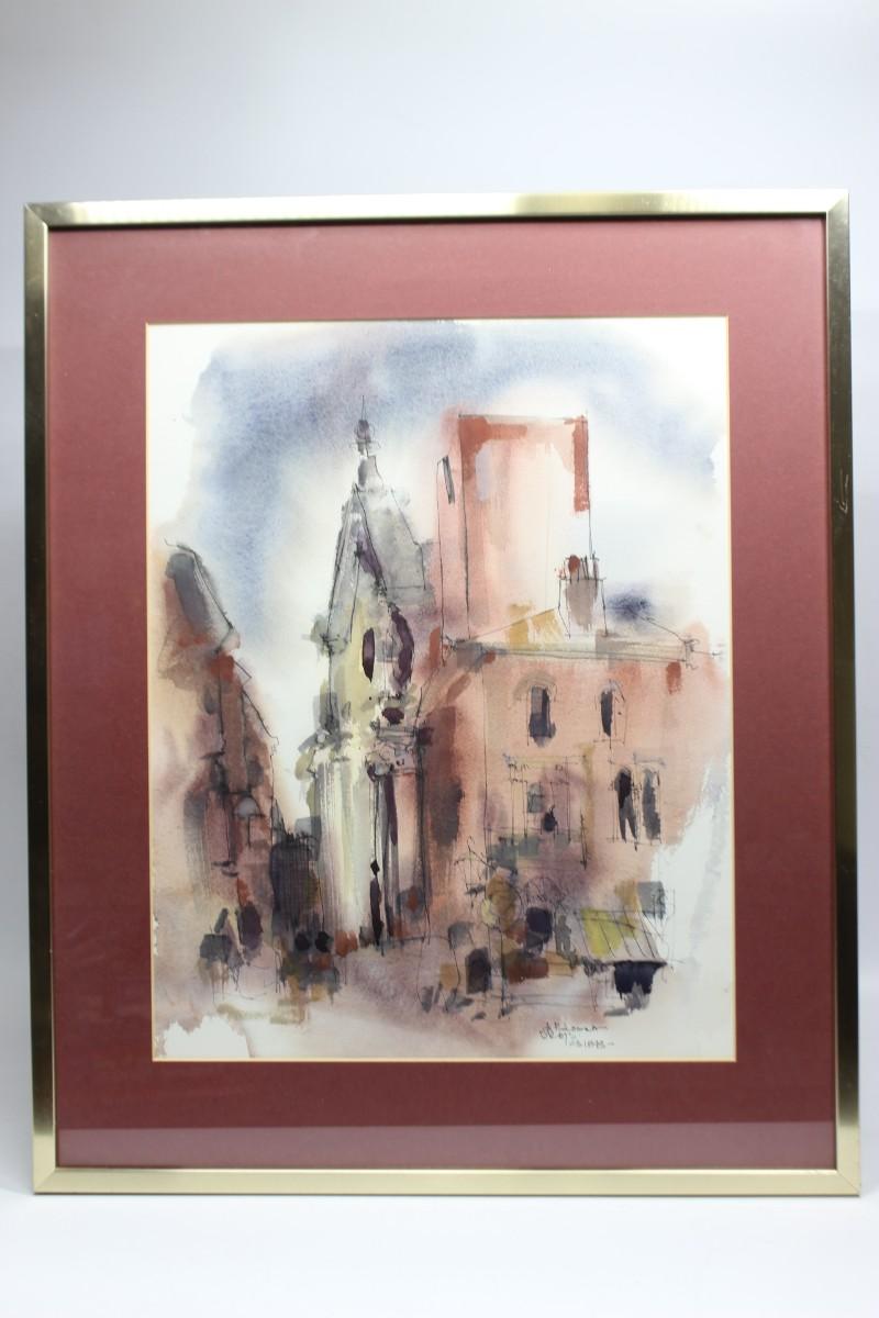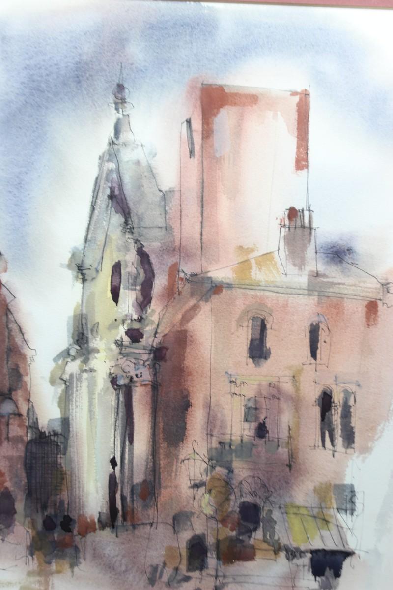 Vintage Bolognese Streetscape Earl Layman Watercolor & Ink Framed Artist Signed Architecture Landscape Study