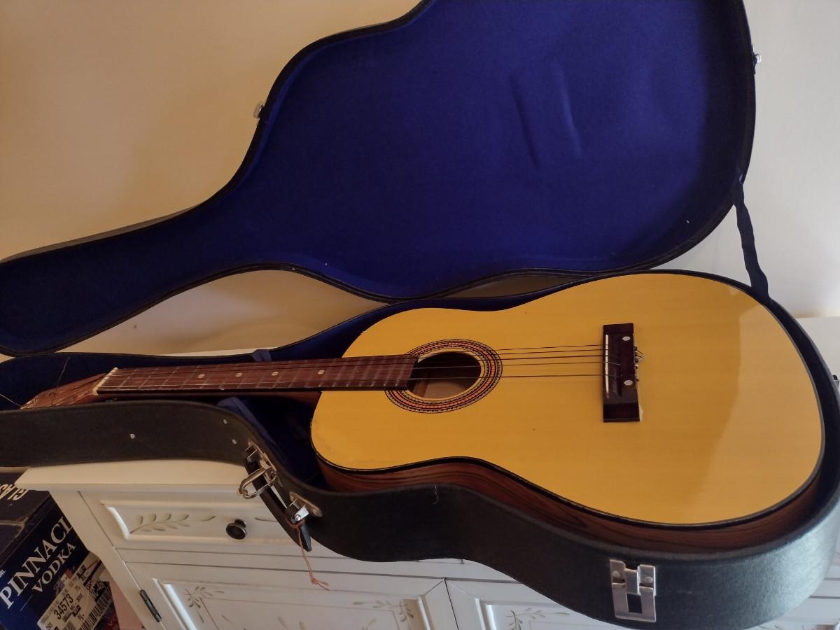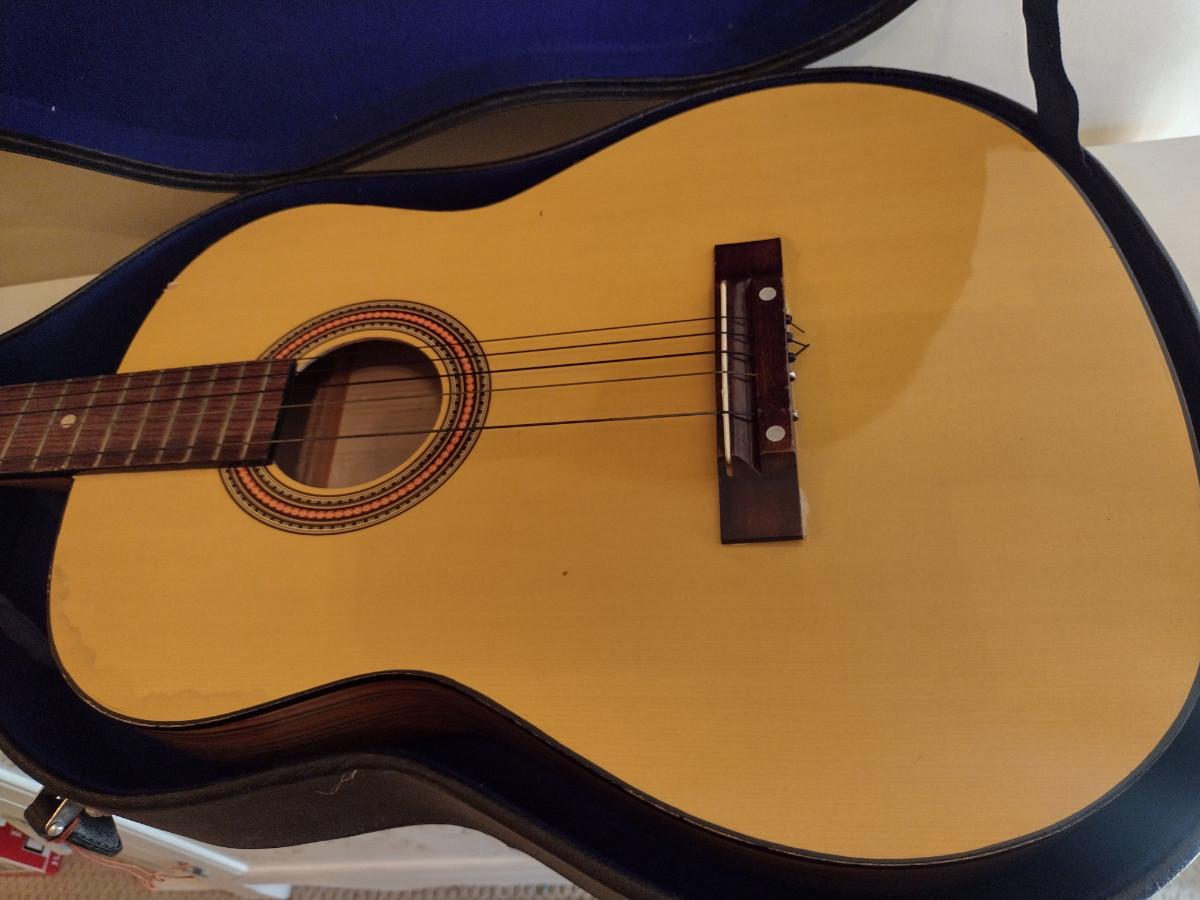 Check Mate Guitar with Case. Please see all pictures- chip and staining on front.
