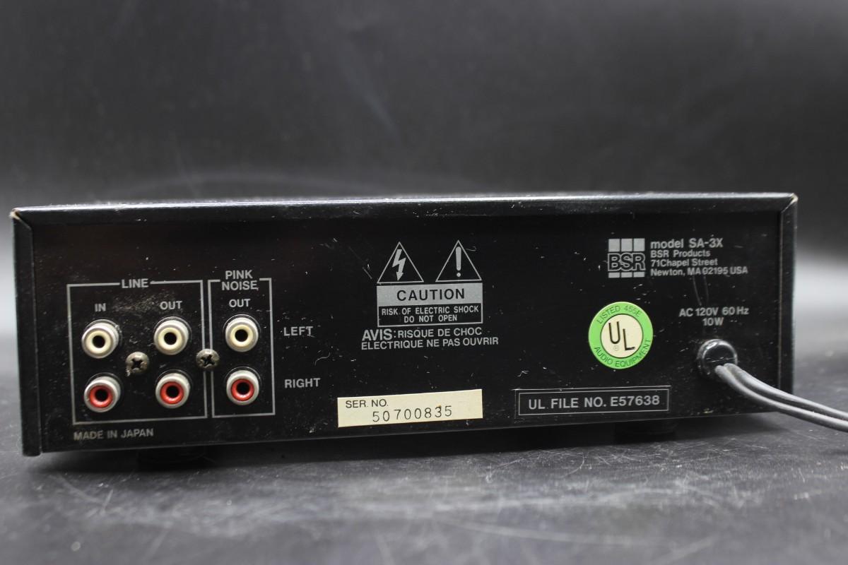 BSR SA-3X 10-Band Audio Spectrum Analyzer, there is no significant damage to the body of the audio analyzer and is in good condition. The frequency bars light up when plugged in powered on, check pictures for more details and for sizing.