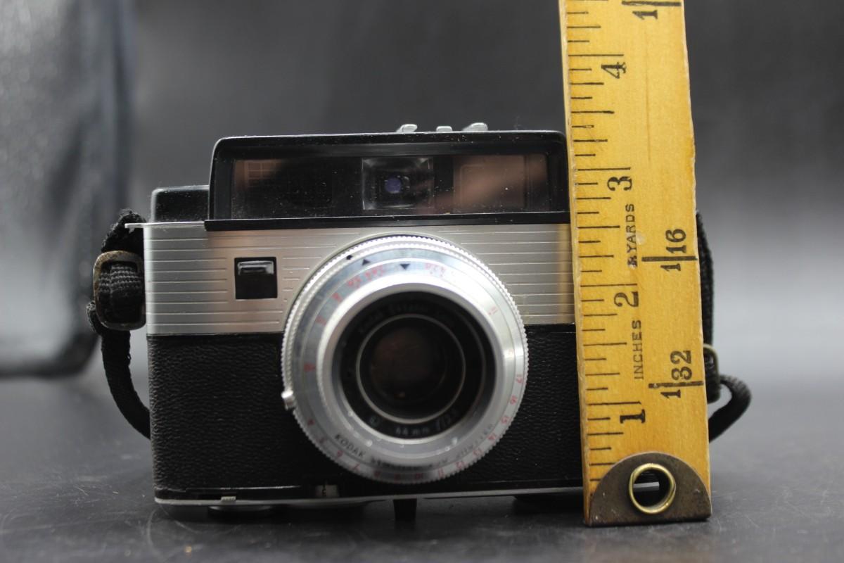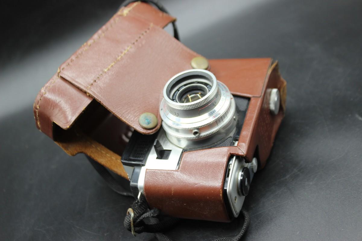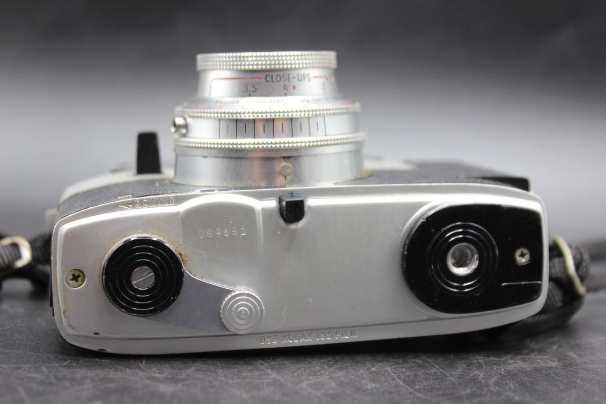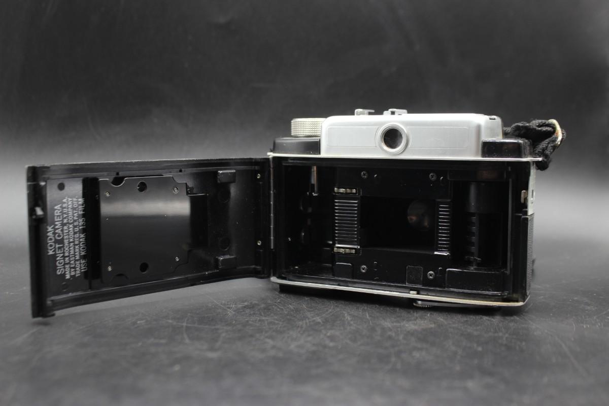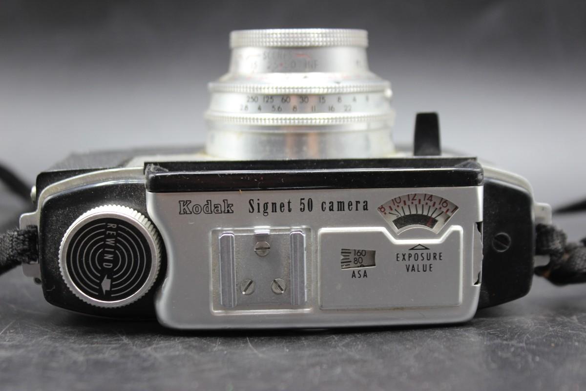Vintage Kodak Signet 50 Film Camera with Leather Case, there is no significant damage to the body of the camera and is in good vintage condition. The leather case has some scuffs to it, but there is no ripping or tearing. Check pictures for more details, the camera has not been tested.