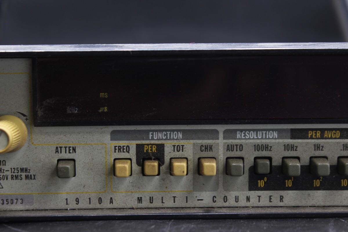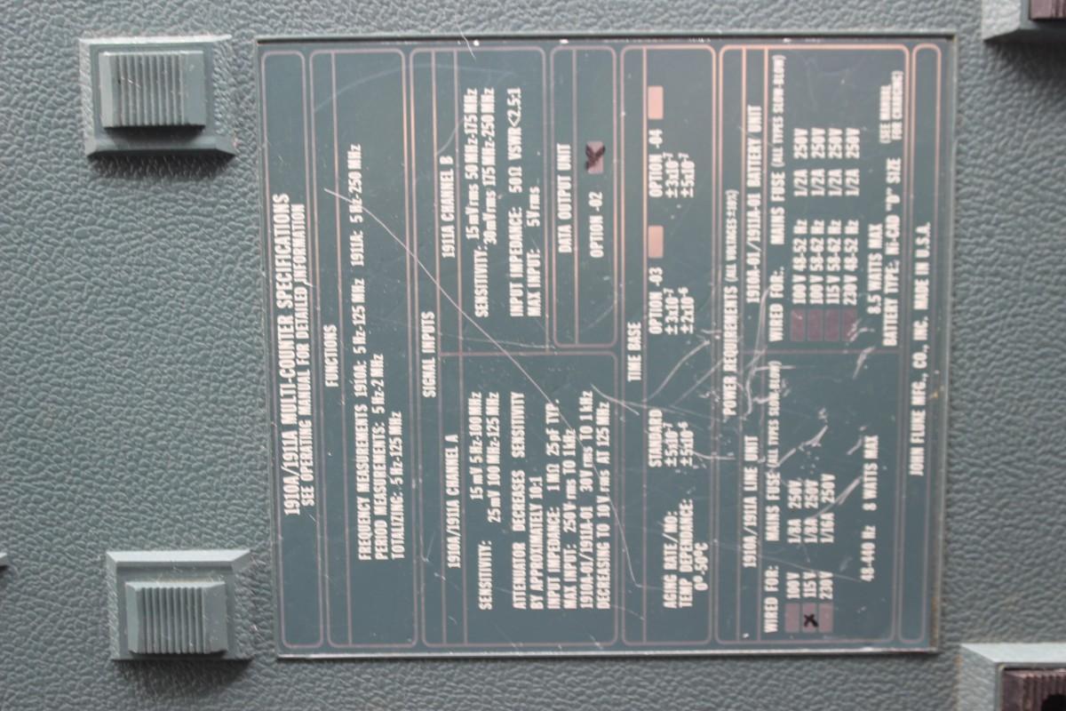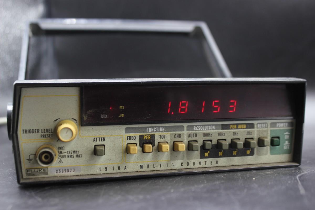 Fluke 1910a Multifunction Frequency Counter, there is no significant damage to the body of the frequency counter and is in good condition. The counter display comes on when plugged in and powered on, check pictures for more details and for sizing.