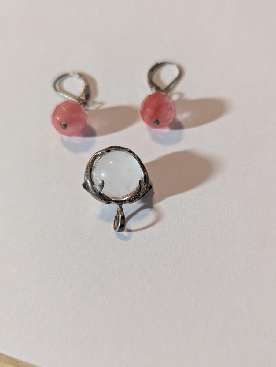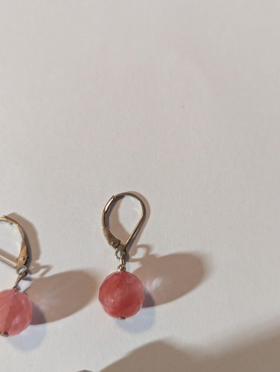 Vintage Drop Earrings Pink Bead Dangle Earrings & Doble Dolphin Design Pendant #23