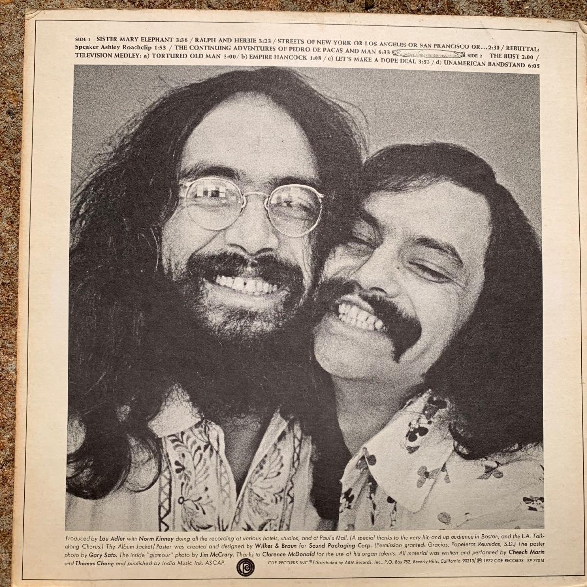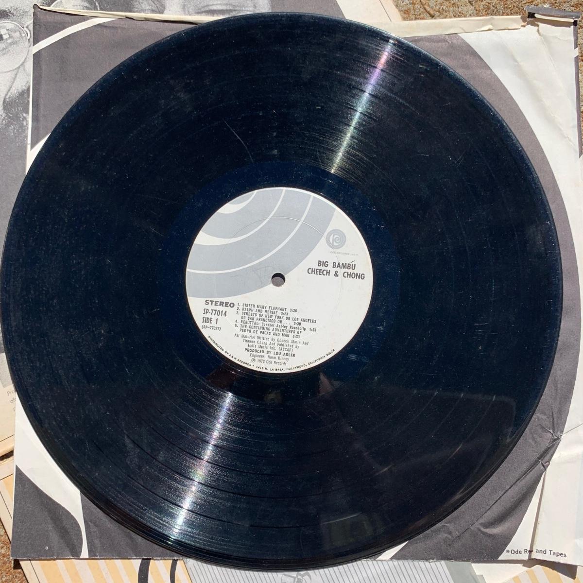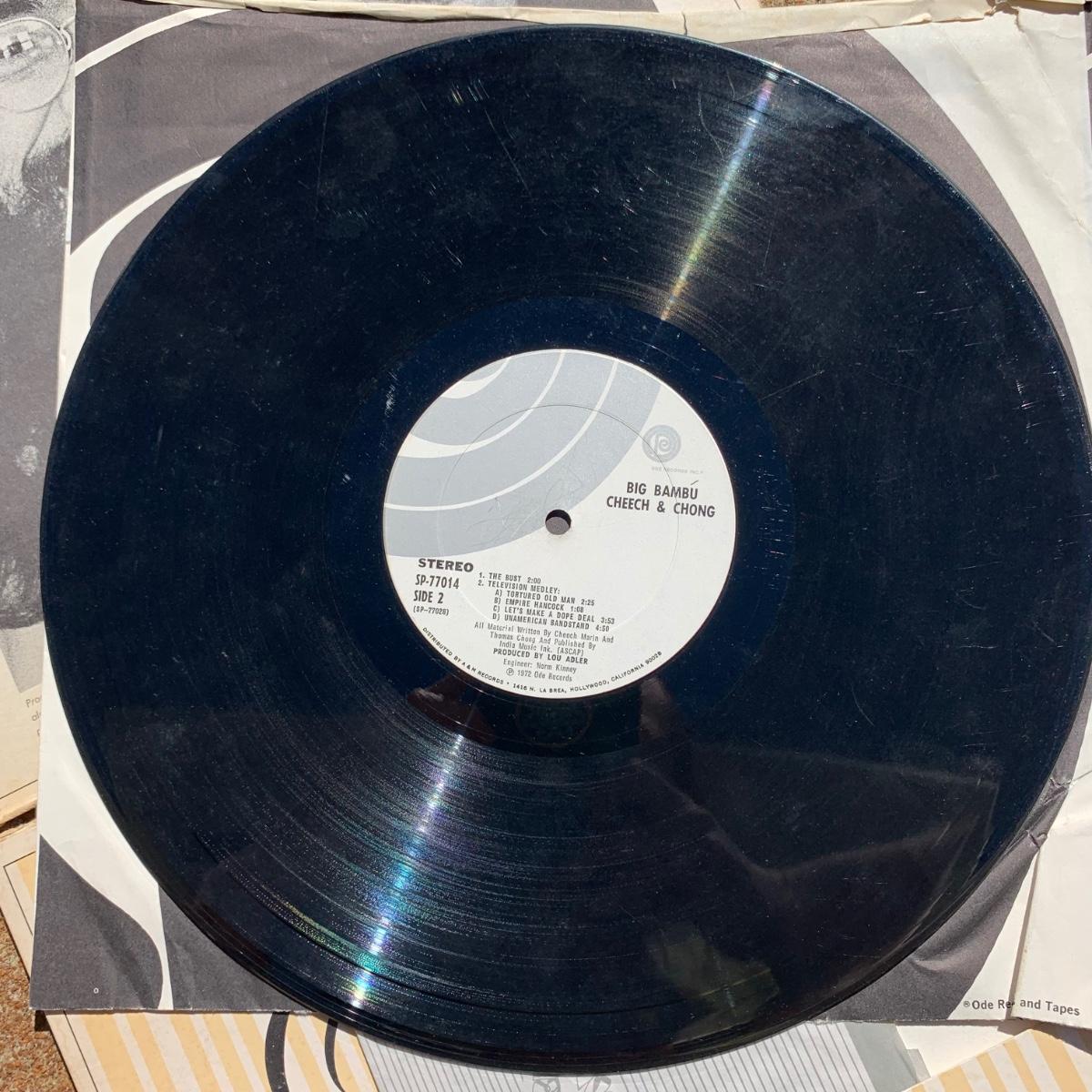 Cheech & Chong’s Big Bambú vinyl record from 1972. Includes a large rolling paper featuring a picture of Cheech and Chong. The album cover shows some wear on the corners and the edges, the record has small scratches, and the rolling paper has some wrinkles, but otherwise all appears to be in good condition. Shipping available.