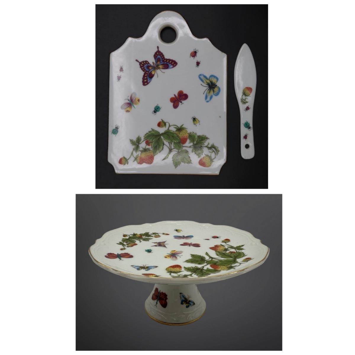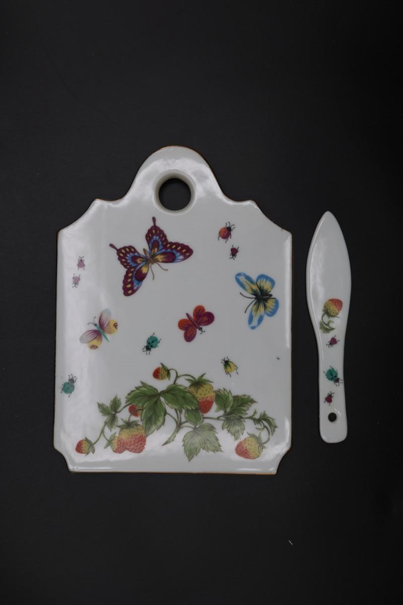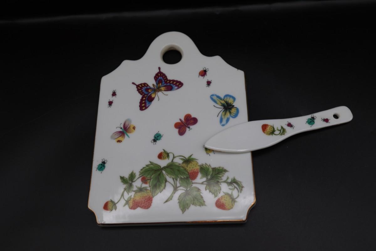 Porcelain Cake Plate and Cheese Board with Knife by Royal Crown (Japan)
