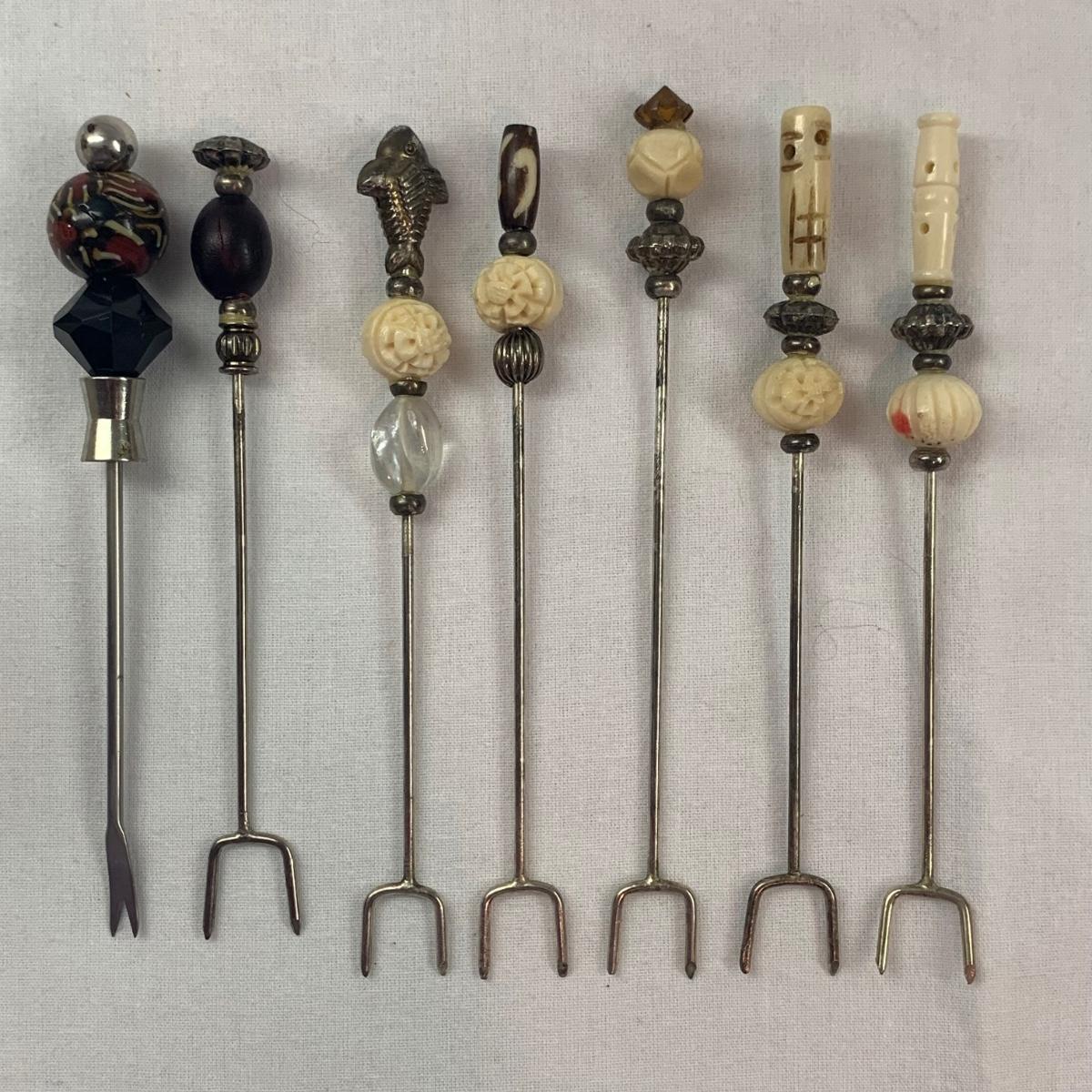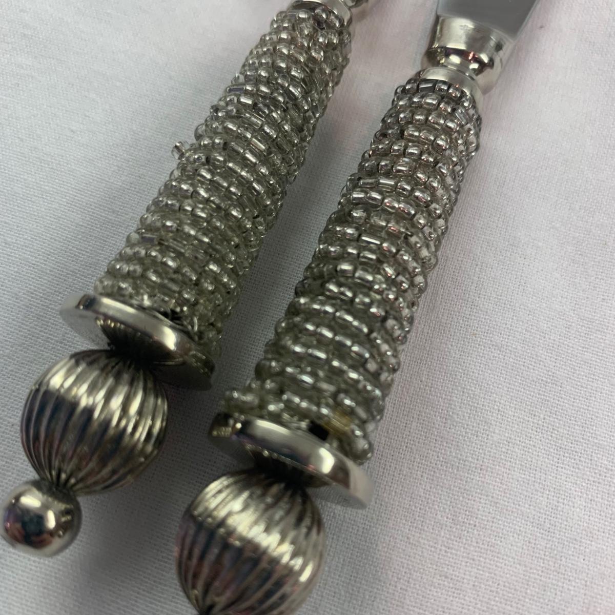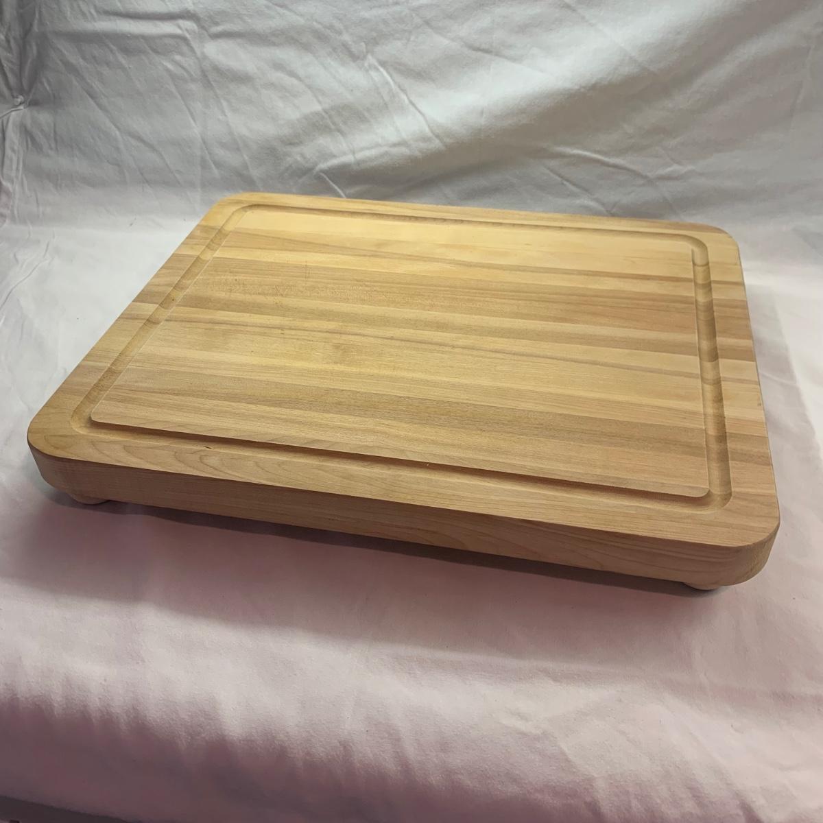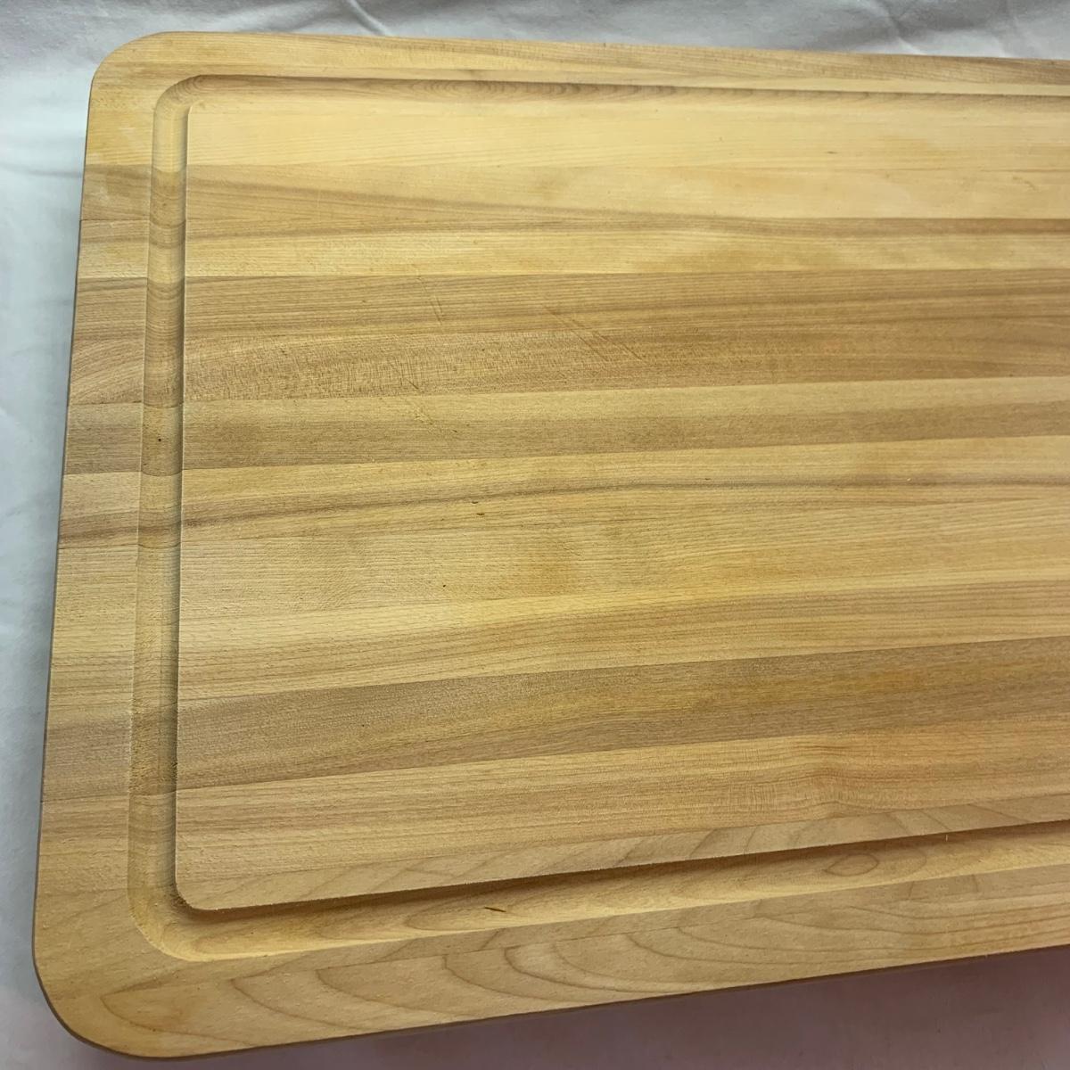 A fun variety of appetizer and serving dishes and utensils. Lot includes one large (20” x 16” x 2.75”H) wooden cutting/serving board, one wooden cheese slicer board, two cheese server boards (one glass, one wood), wood salad claws, four little wood bowls, and two wood utensils. Also included are a variety of cheese knives and other appetizer serving utensils, including a box of four Mother of Pearl canapé knives and a cherry pitter. Finally, there are 12 square glass plates with a square shaped bowl. The glass plates and the large cutting board have some light scratches/knife marks.