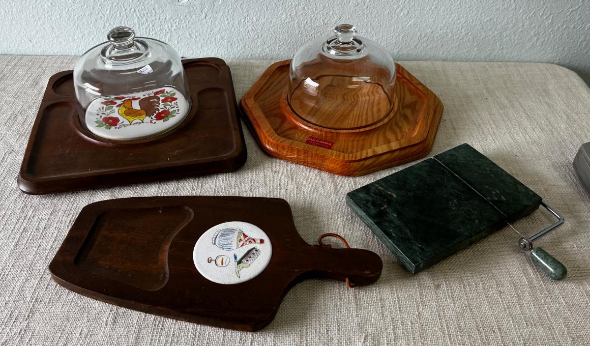 CHEESE: Slicer, Tray, 2 Covered Domes for Balls.