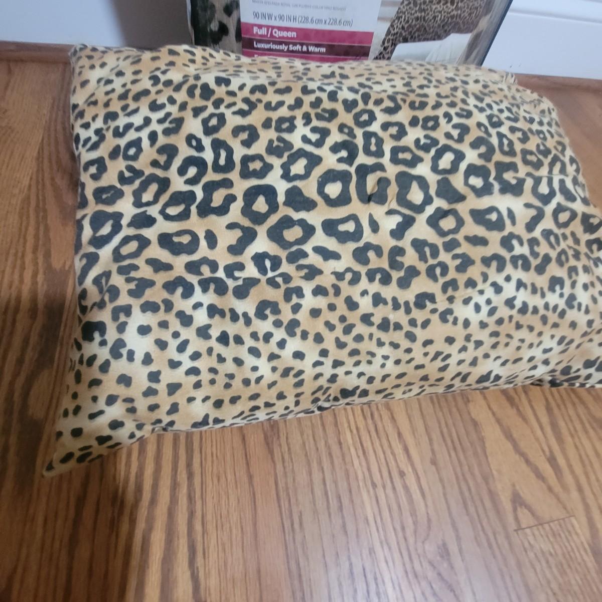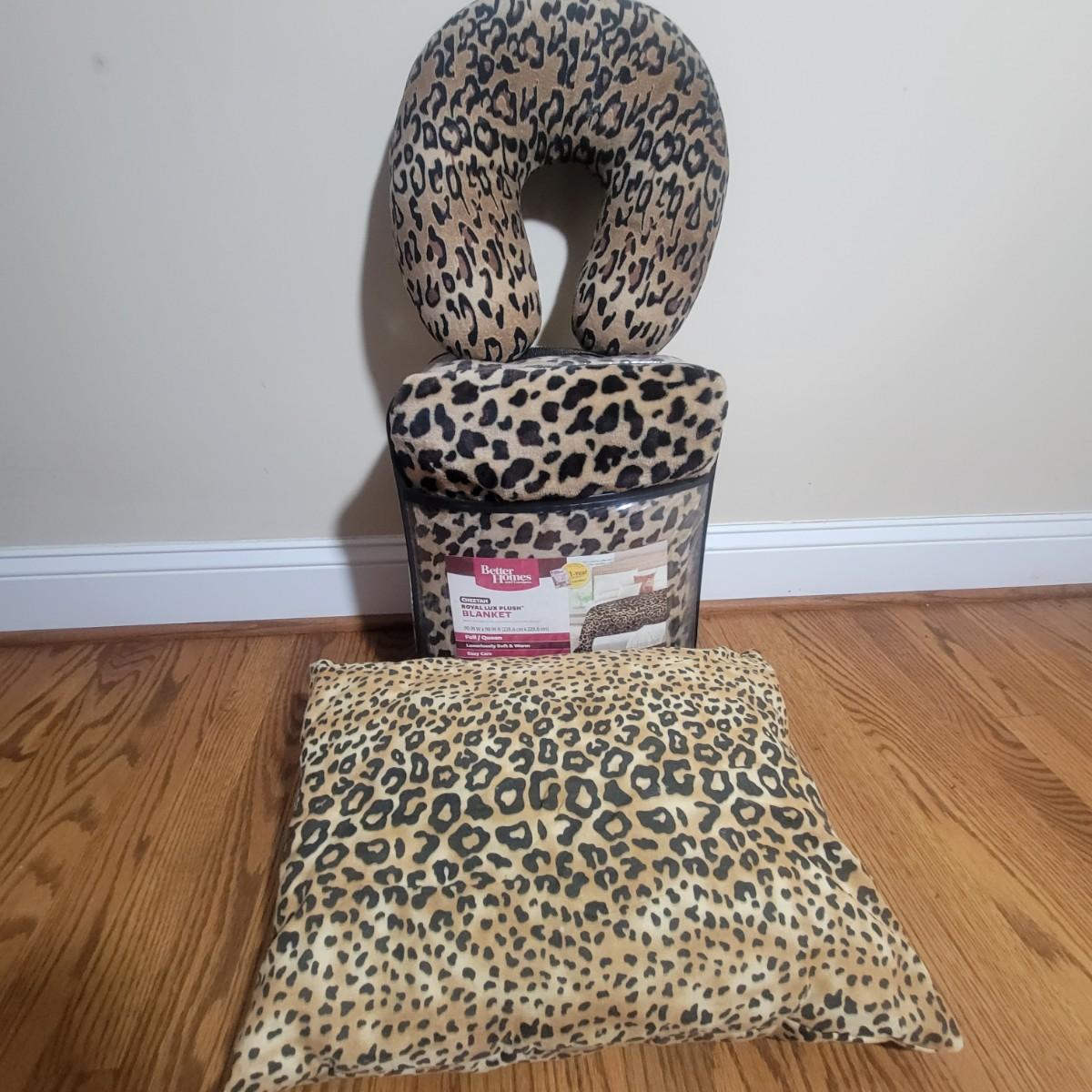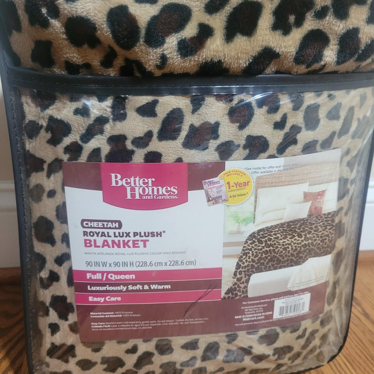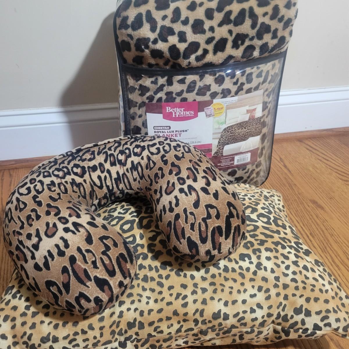 Plush, fleece like full/queen cheetah print blanket in new condition with original packaging. Also includes matching neck pillow and an accent pillow. Shipping available