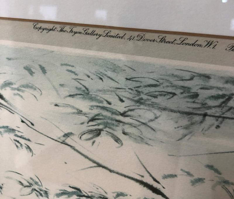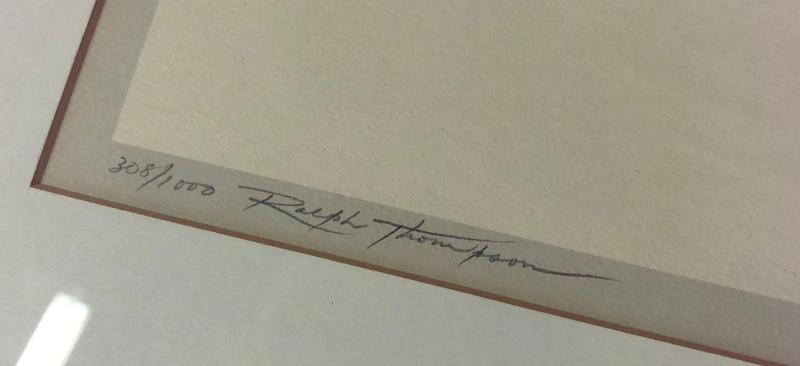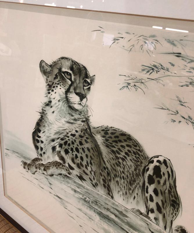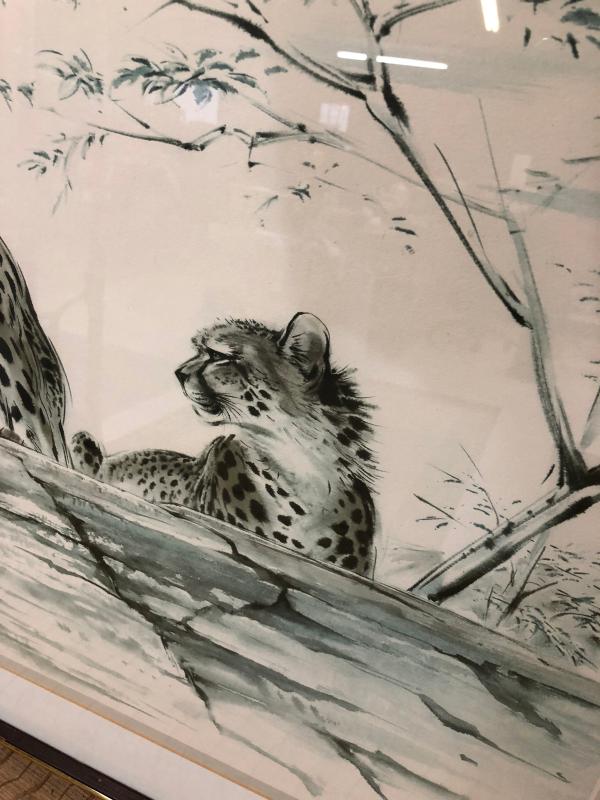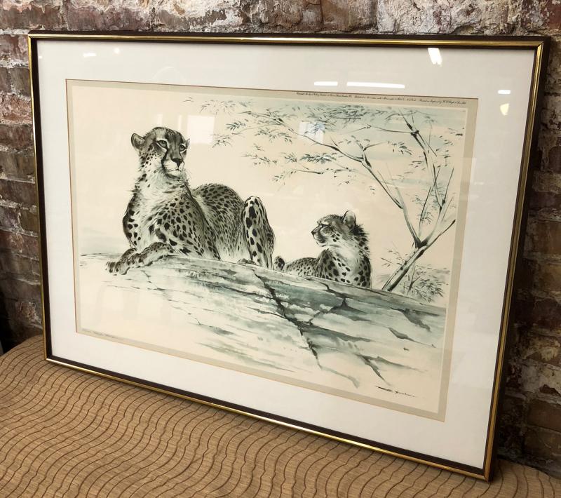Excellent condition on this framed wildlife print signed and numbered by British artist Ralph Thompson (1913-2009)..."Cheetahs at Rest" copyrighted by the Tryon Gallery and printed in England..Offered through Abercrombie & Fitch...38" x 28"...Limited edition...380/1000