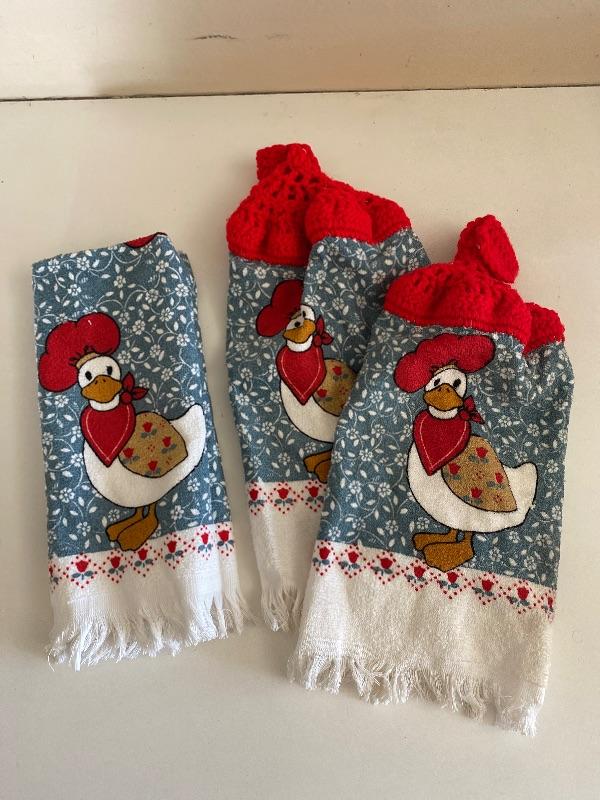 Set of 3 kitchen towels. One has a spot, almost like a paint smudge.
