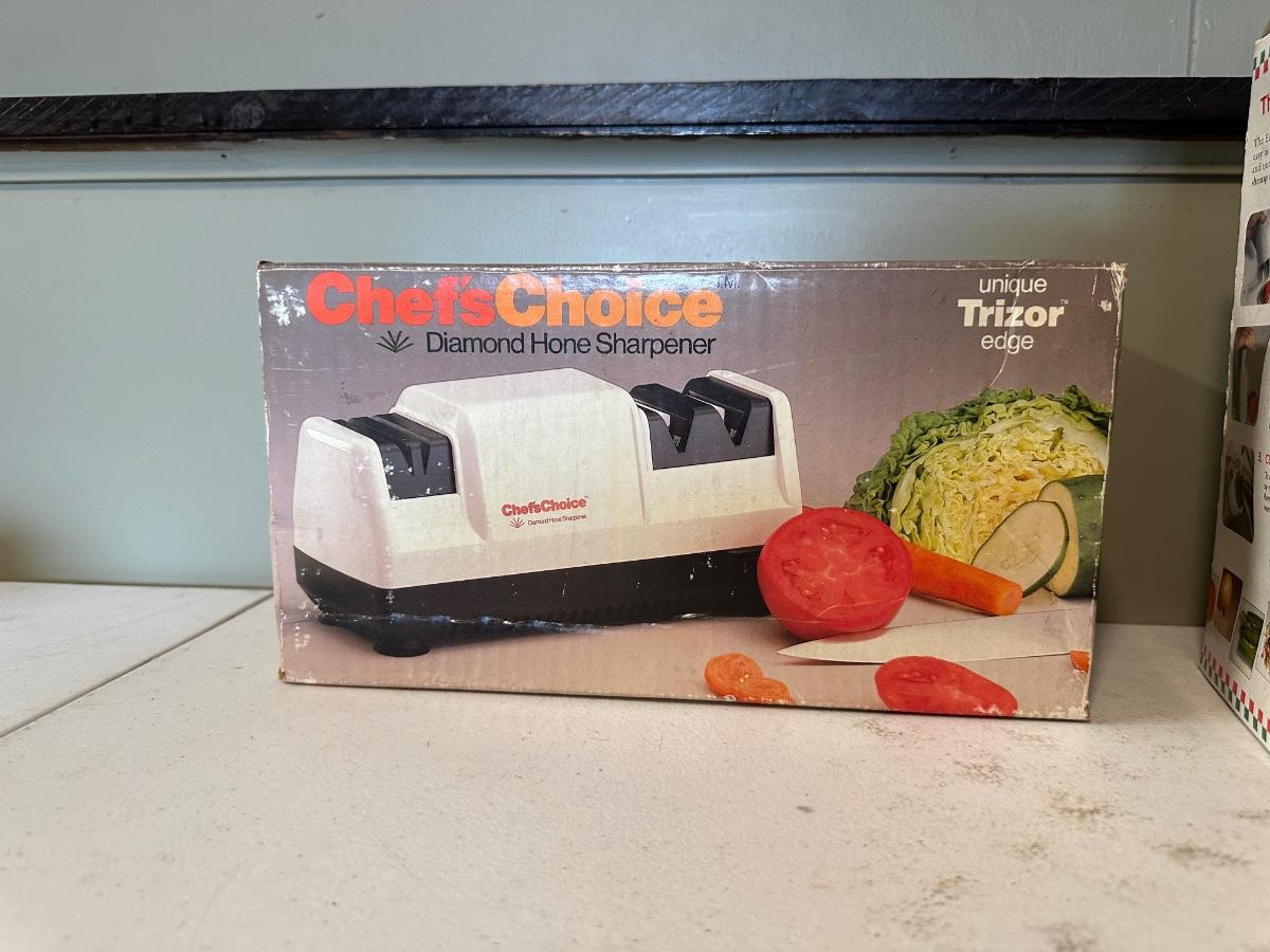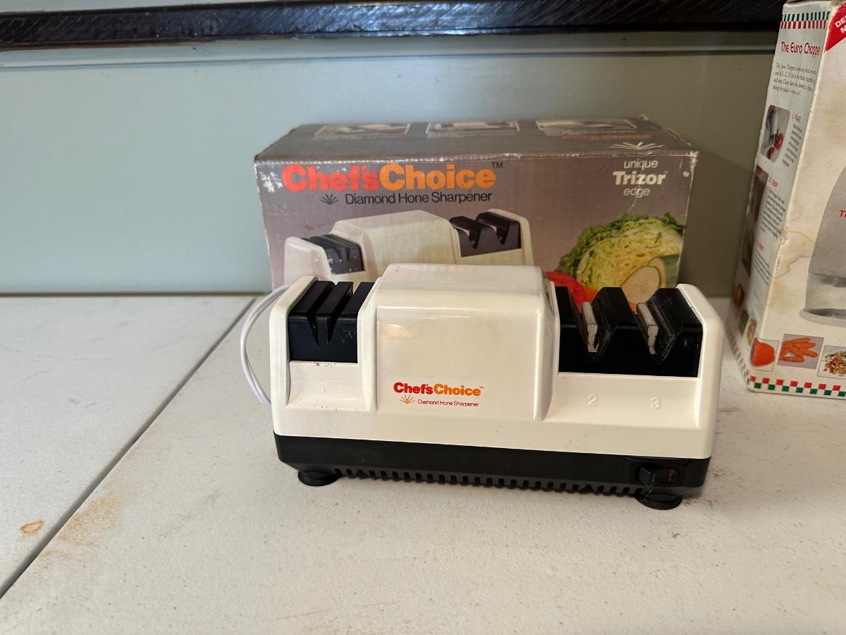 CHEFS CHOICE KNIFE SHARPENER, THE EURO CHOPPER AND POUR OVER COFFEE BREWER