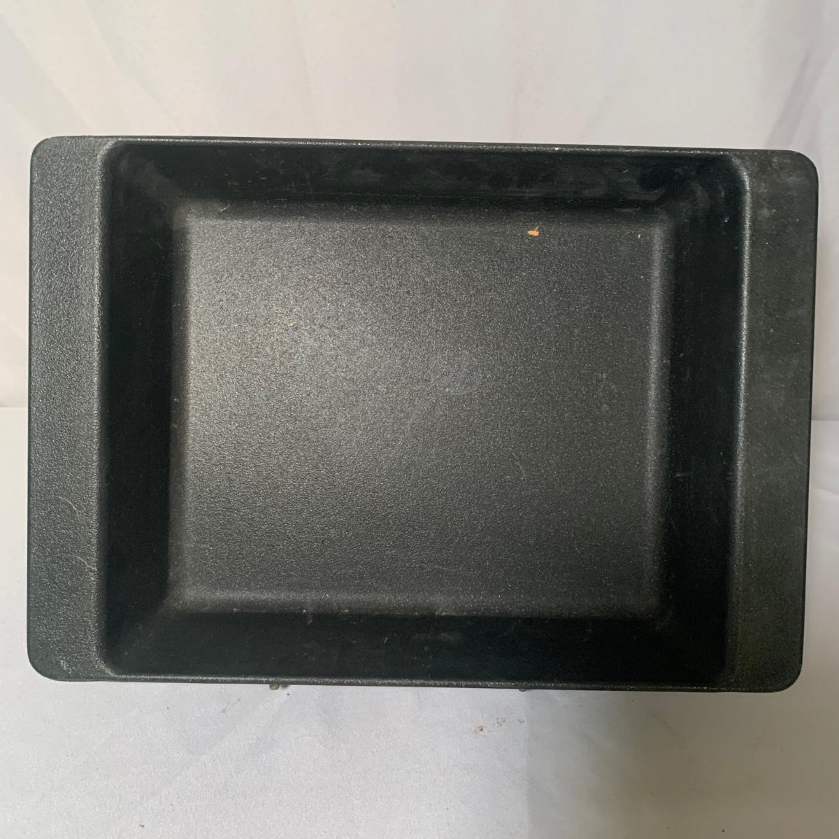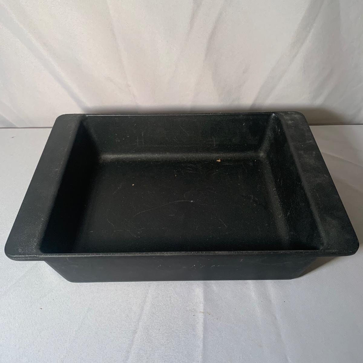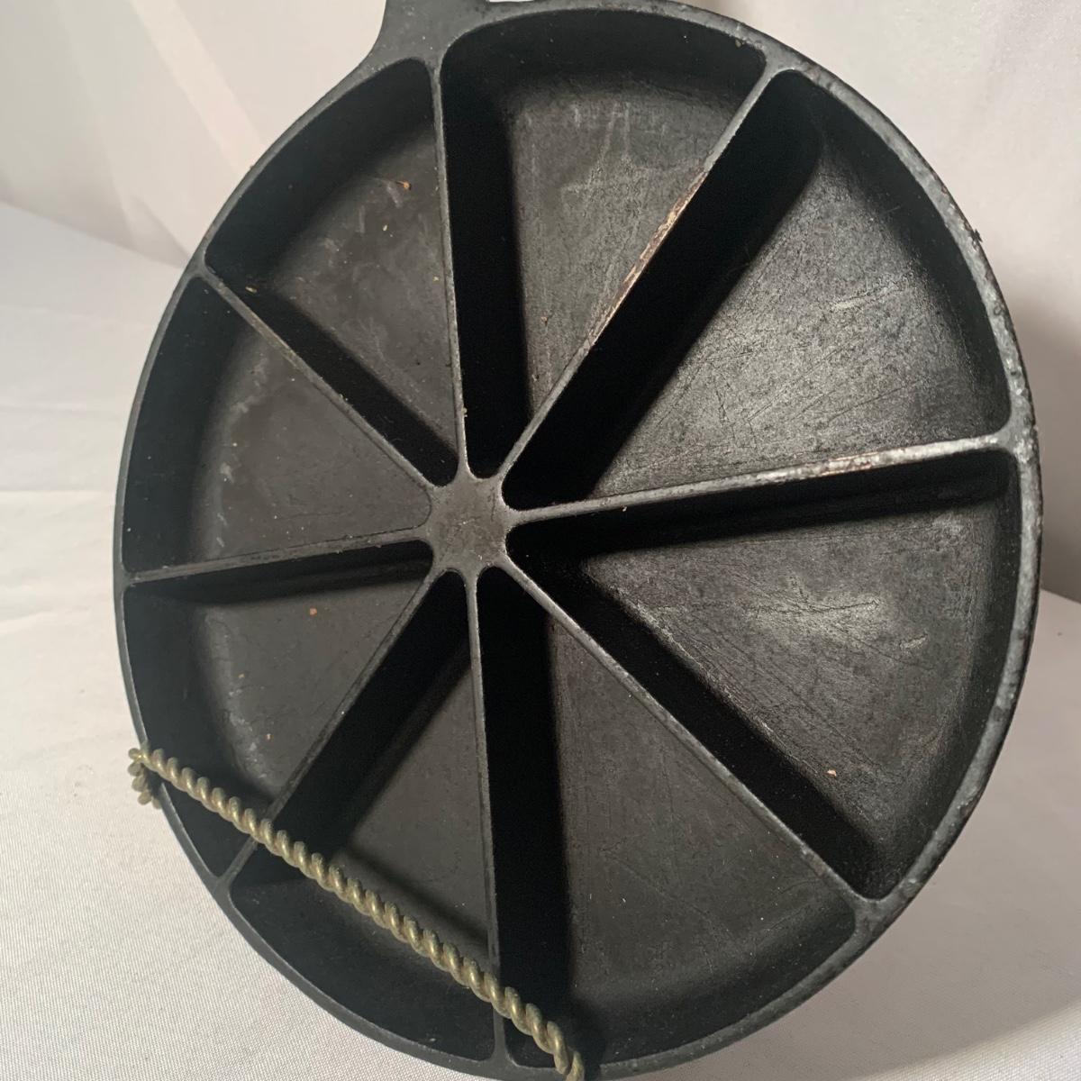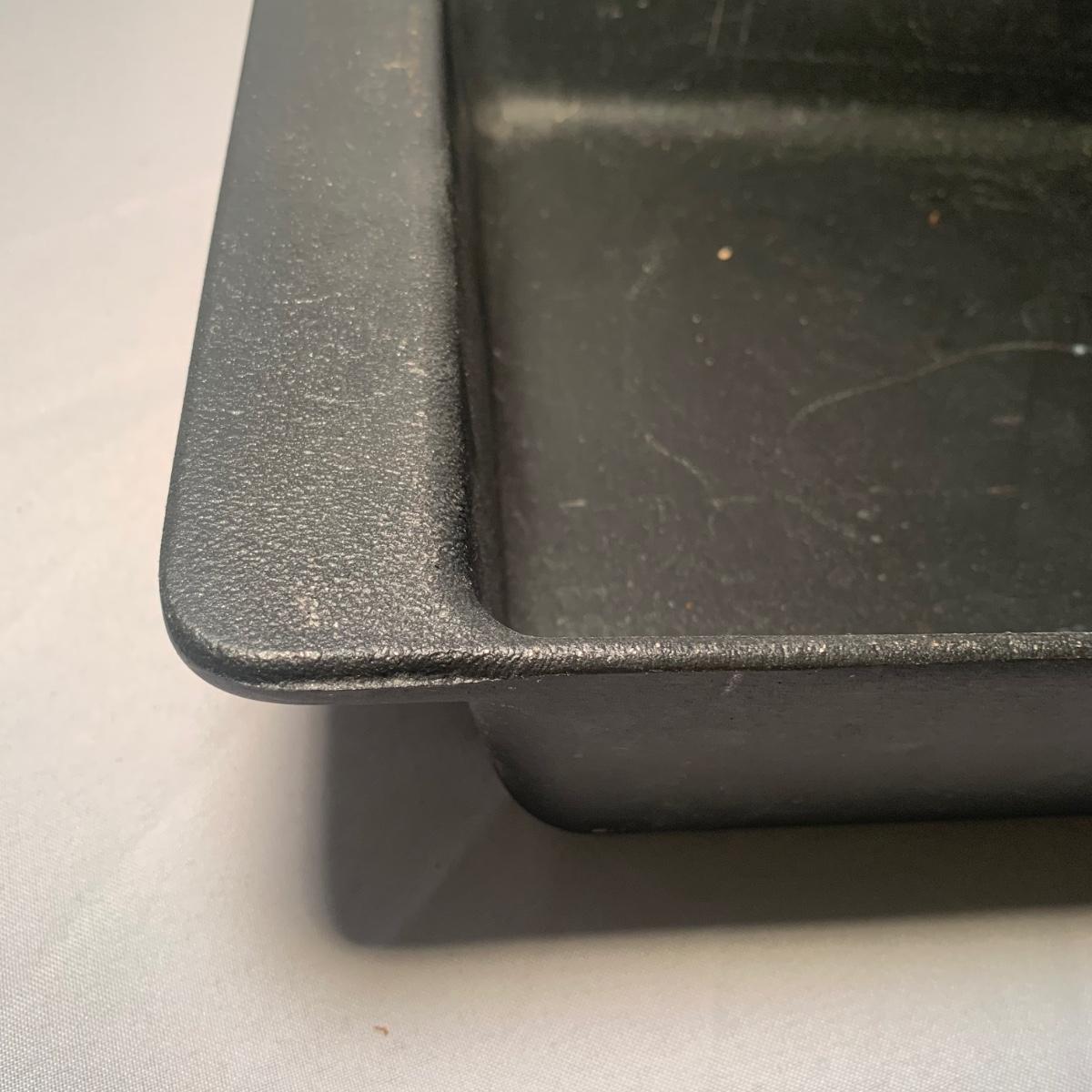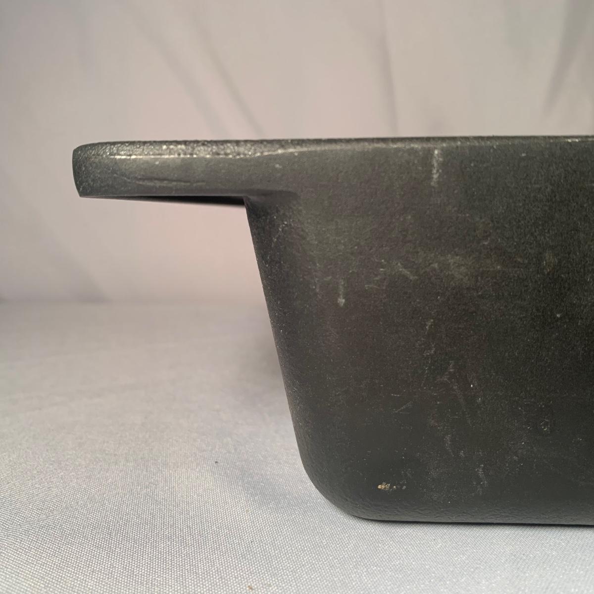 Lot includes 12”L x 10”W Chef’s Design Lasagna Pan Plus (model 6250). Made in Manitowoc, Wisconsin, it is made of heavyweight aluminum and has a non-stick finish. Pan has a few scratches but is in good condition. Lot also includes a 9” Cast iron wedge cornbread pan. Cast iron could use a good cleaning, but will still make delicious cornbread in single serve wedges! Wire stand not included.