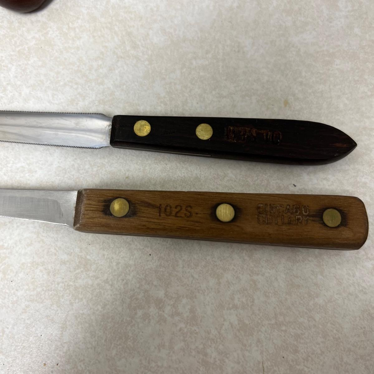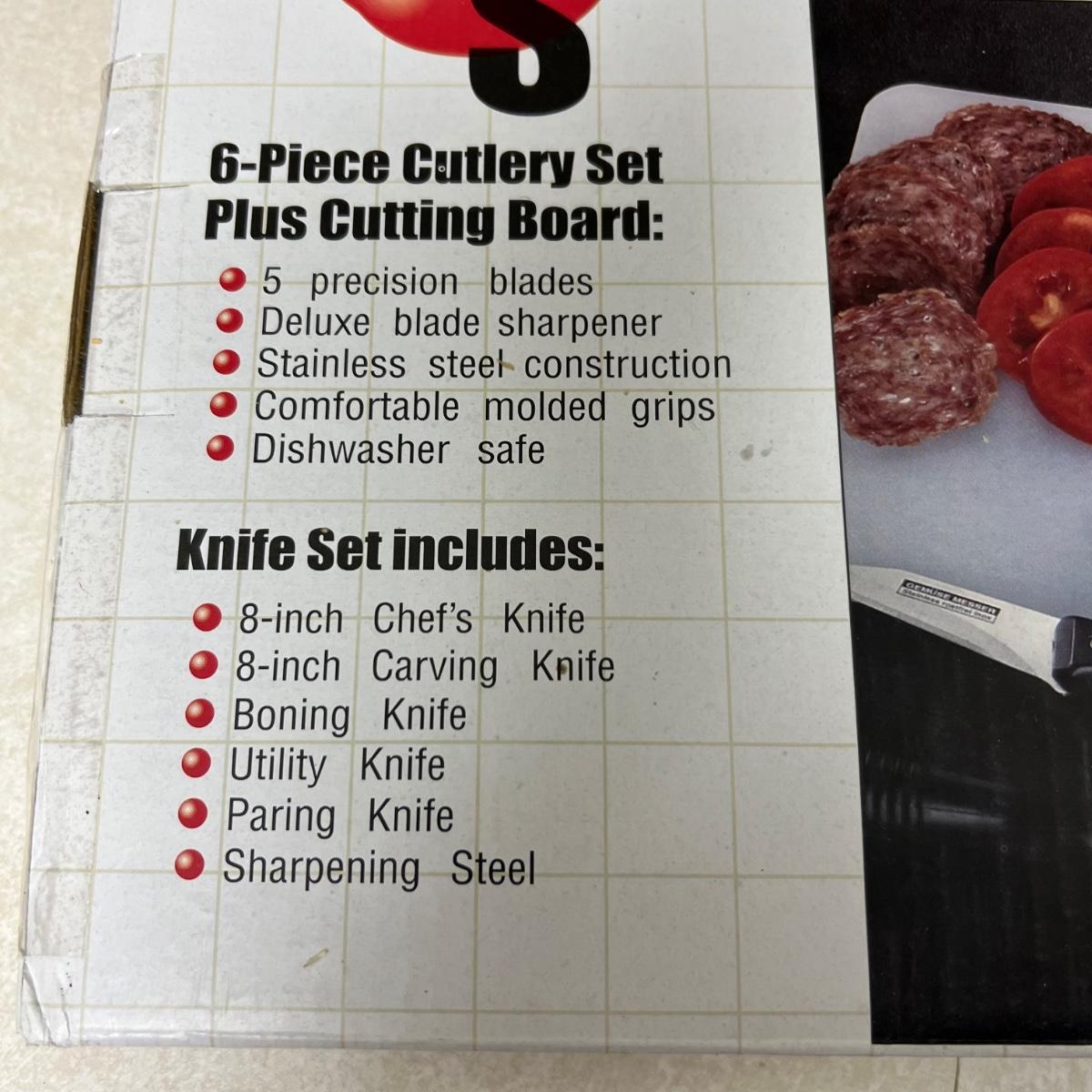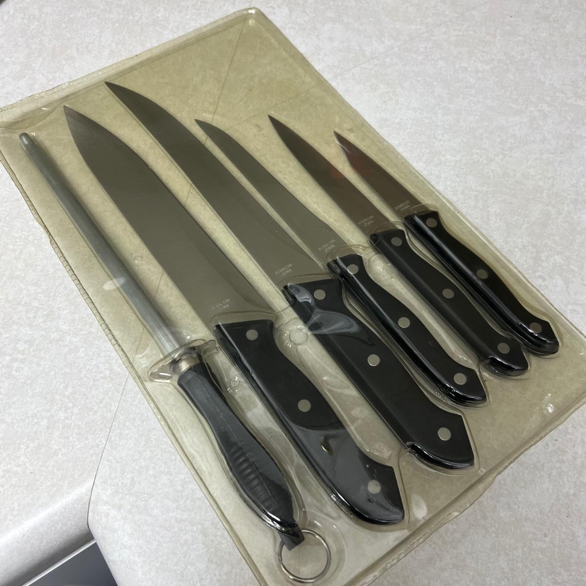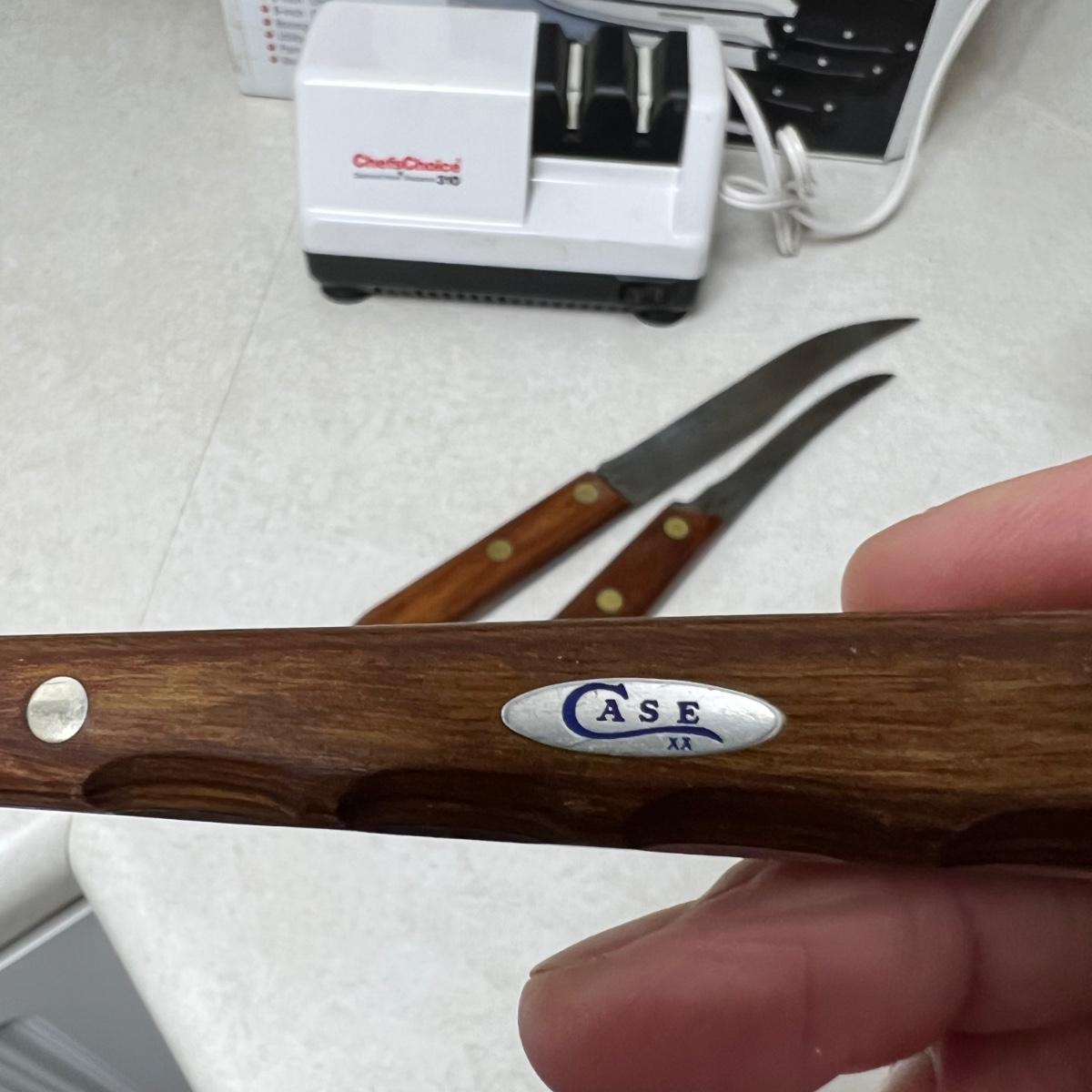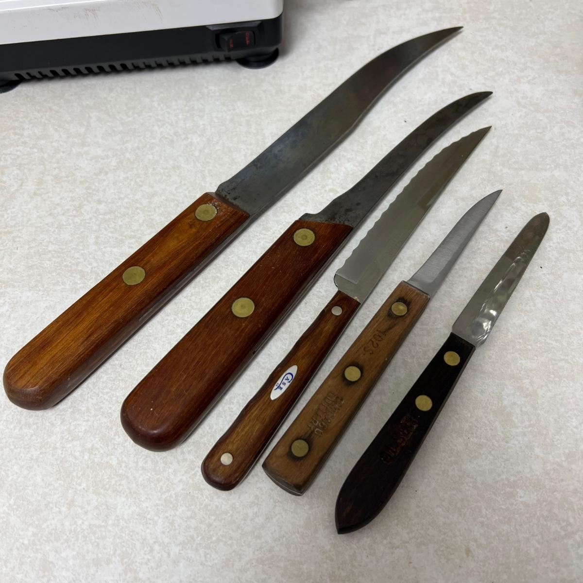 A great assortment of knives that includes NIB set of Kuchestolz and more. The Chef’s Choice electric sharpener powered on when plugged in.