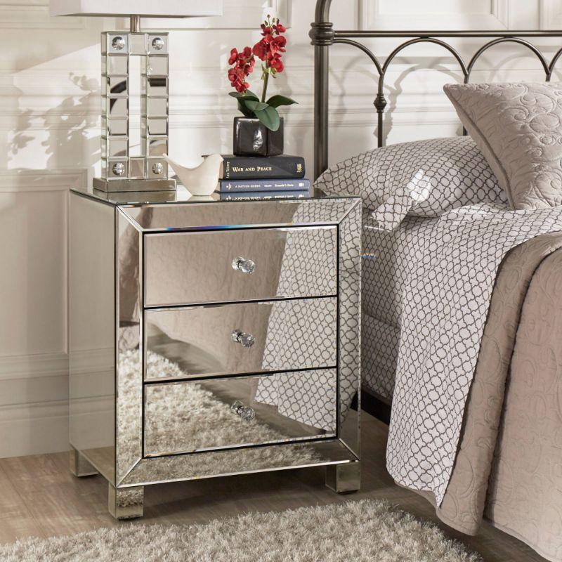 Chelsea Lane Silver Mirrored 3-Drawer Nightstand, SEE DESCRIPTION, Retails $290