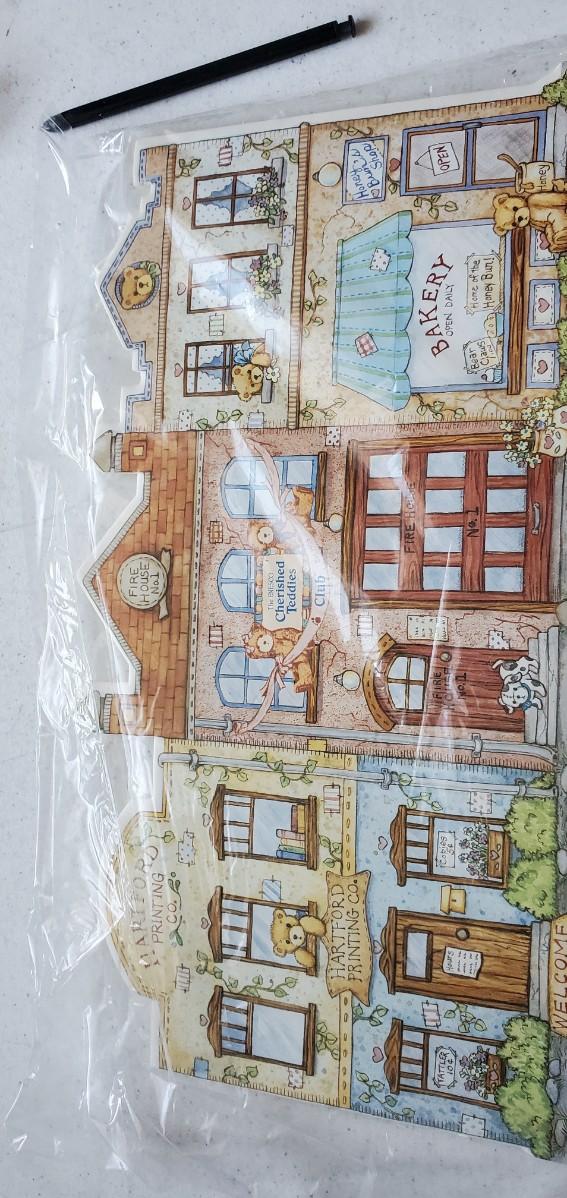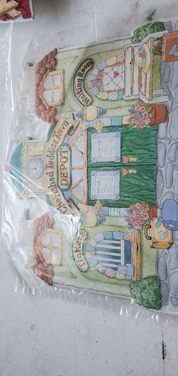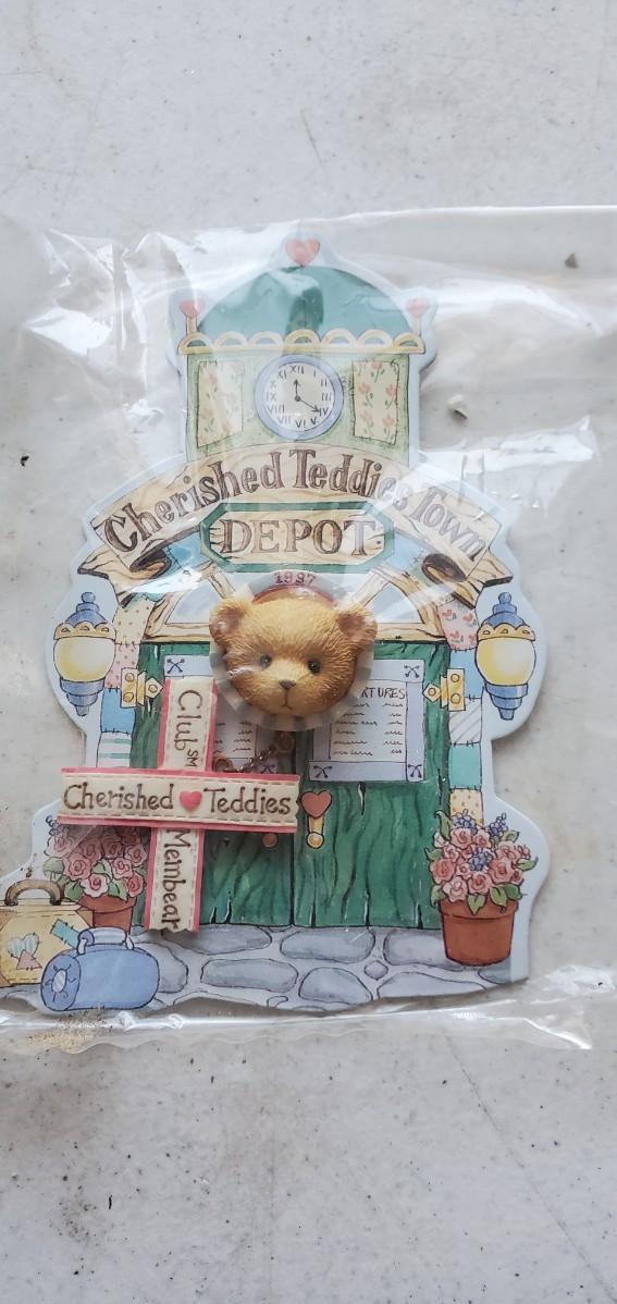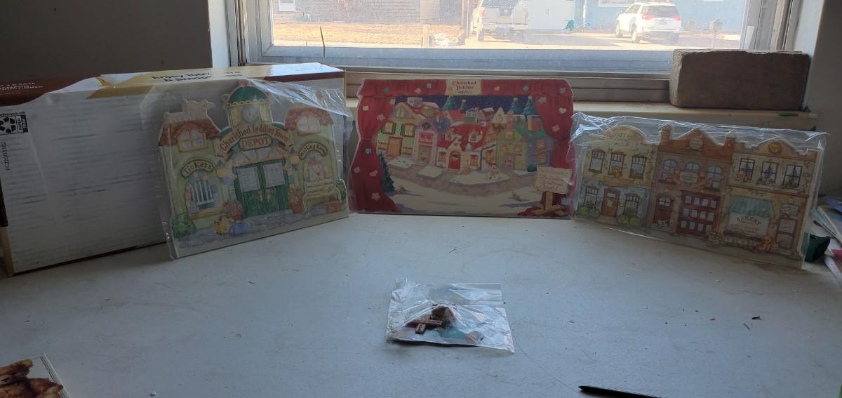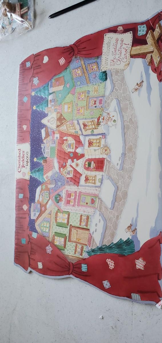 4 piece set consist of cherished teddies Town depot,cherished teddies Christmas Carol, cherished teddies town depot board minature,cherished teddies club