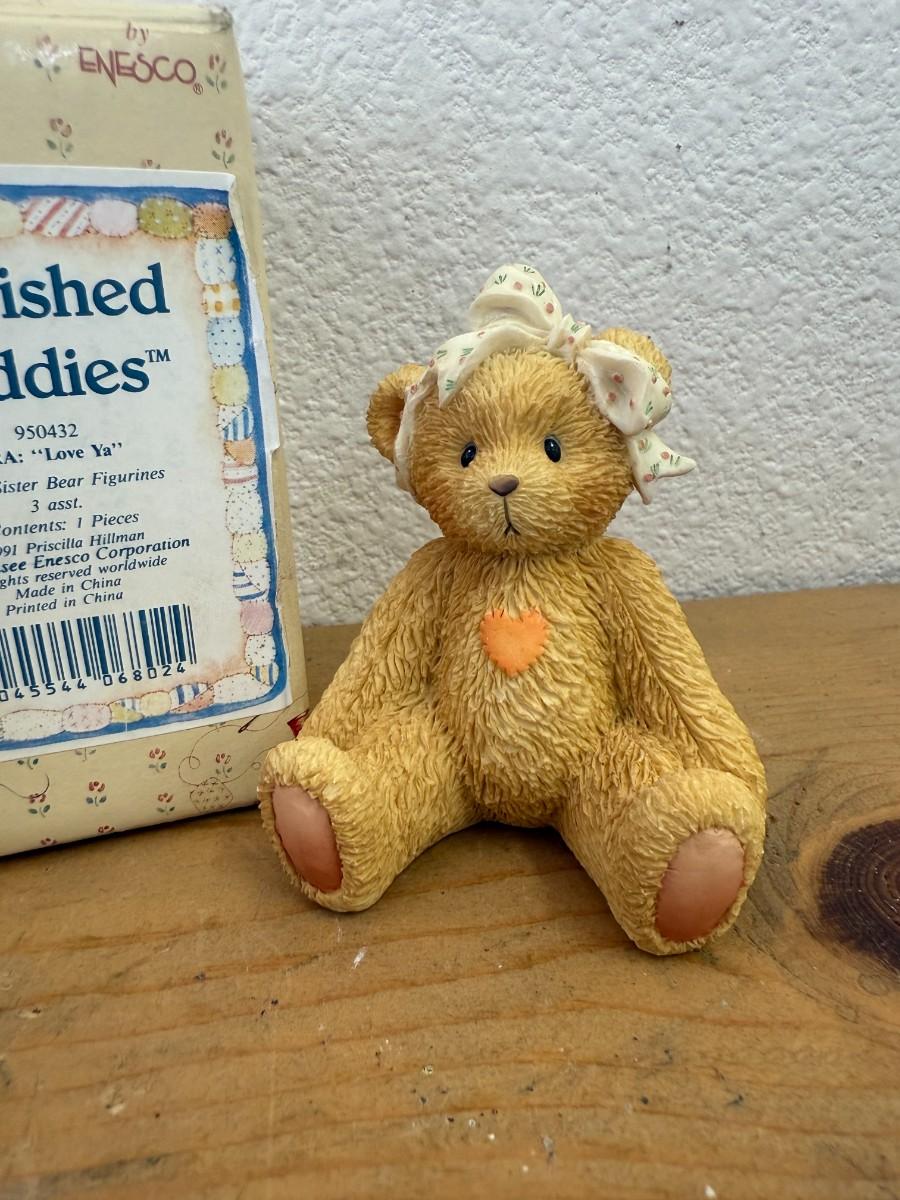This endearing Cherished Teddies Jacki figurine brings warmth and charm to any collection, perfect for teddy bear lovers.