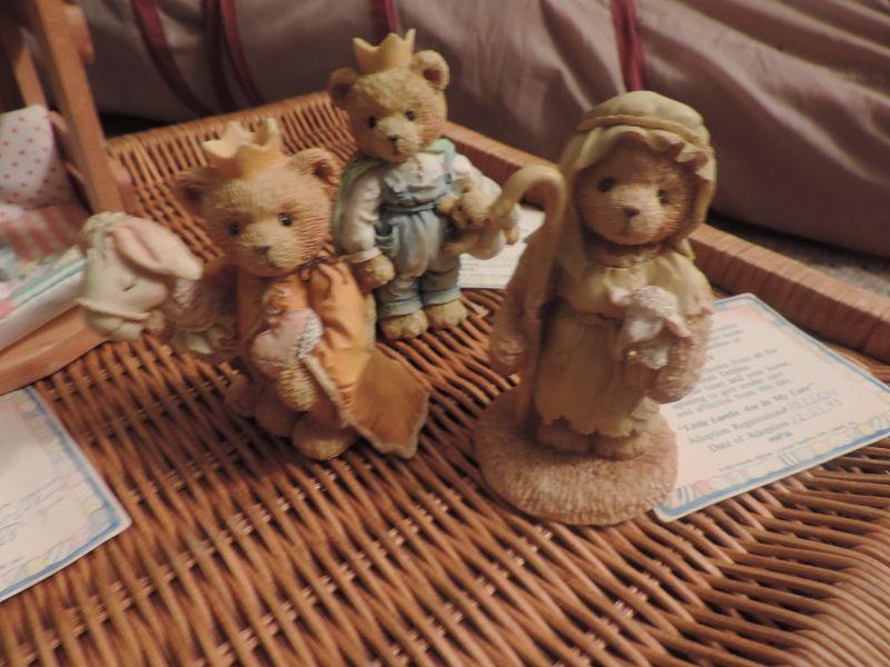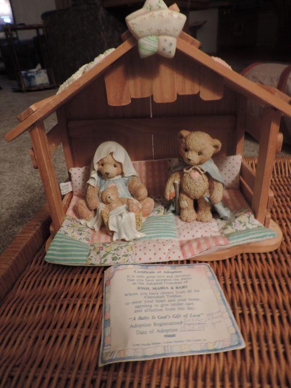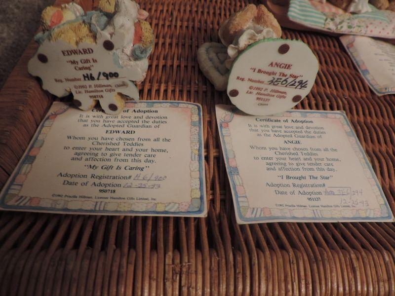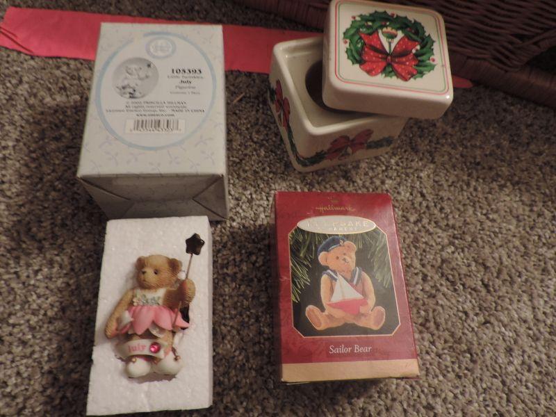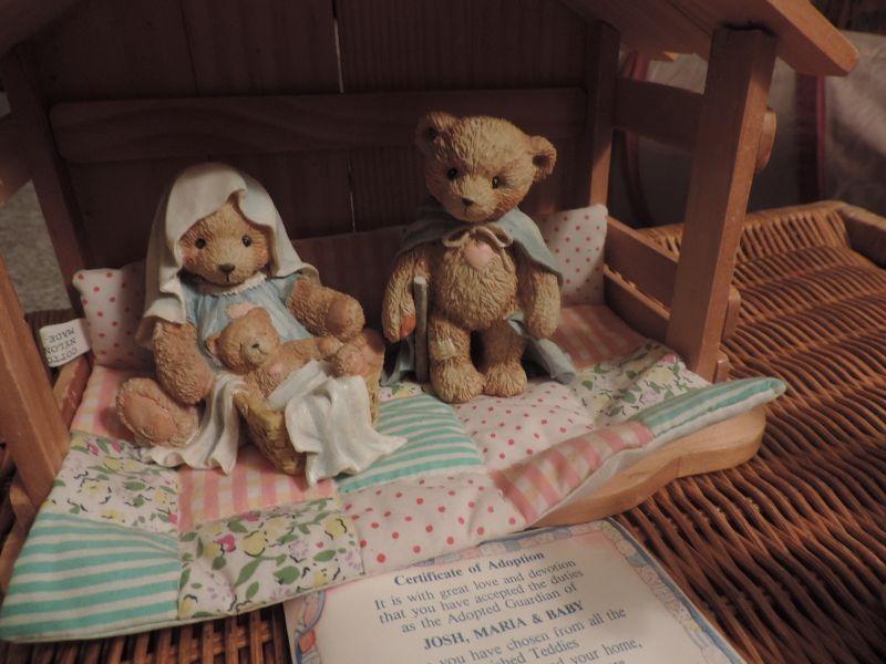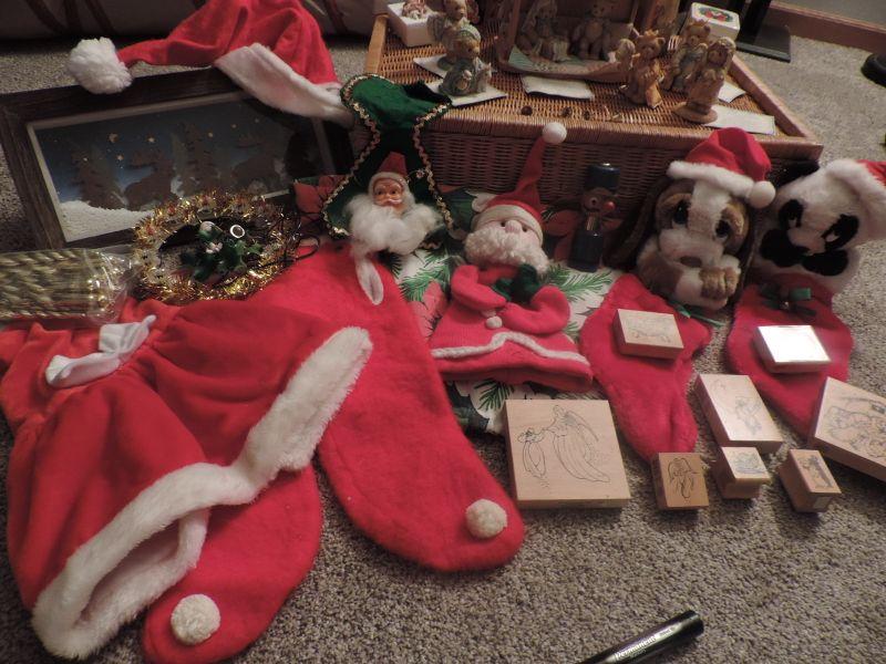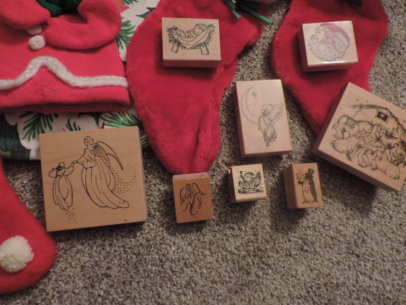 CHERISHED TEDDIES HAVE AUTHENTICITY CARD, CHRISTMAS THEMED RUBBER STAMPS (NEVER USED), VINTAGE SOLDER SALT & PEPPER SHAKER, AND OTHER CHRISTMAS ITEMS