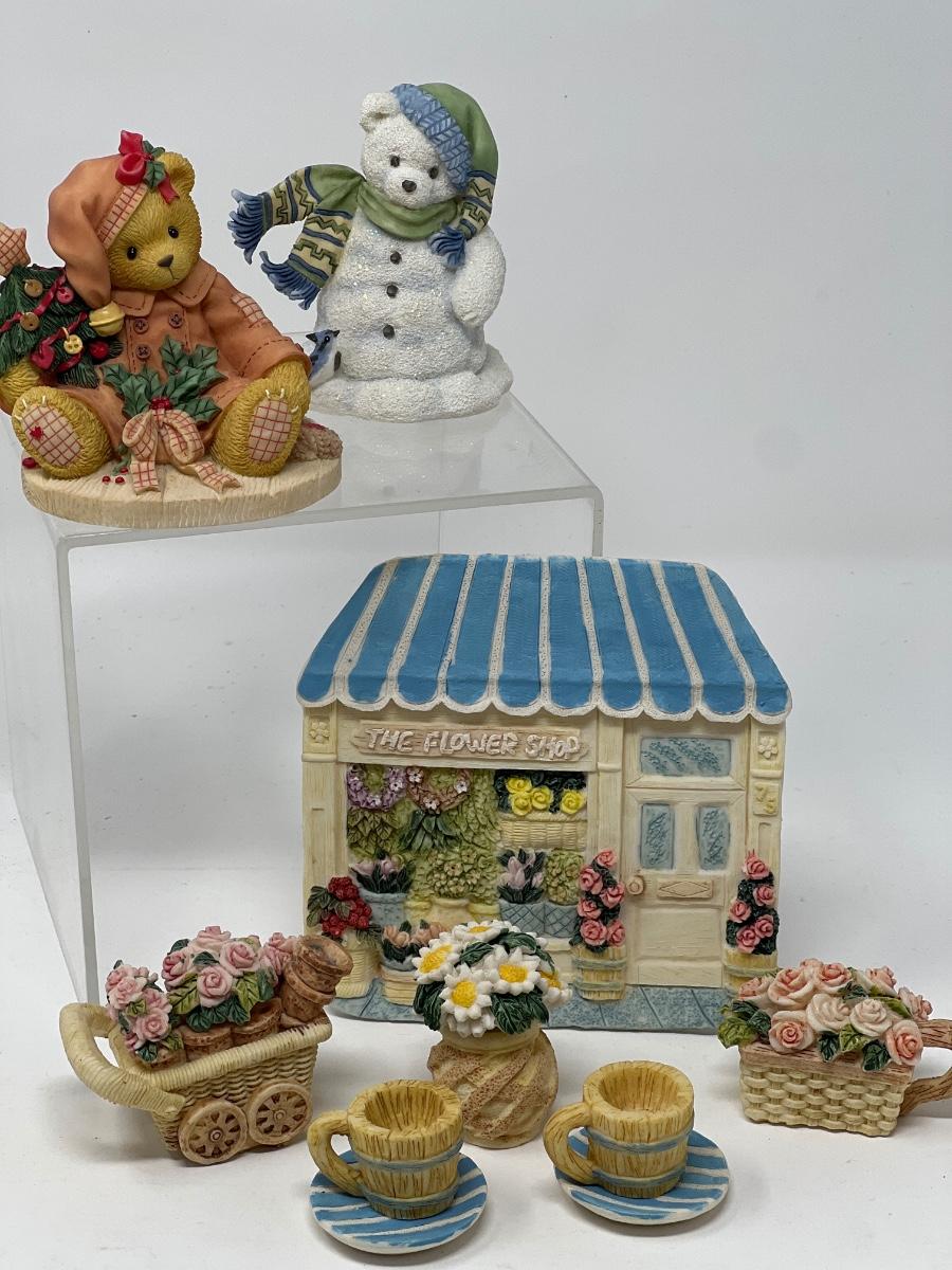 Cherished Teddies Snow Bear & Annette and Pop Imports Flower Shop