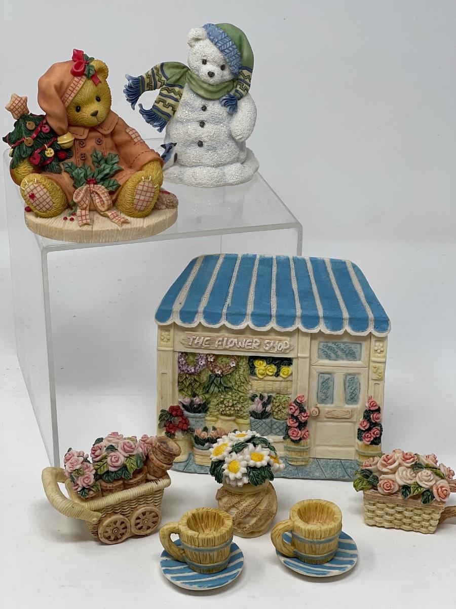 Cherished Teddies Snow Bear & Annette and Pop Imports Flower Shop