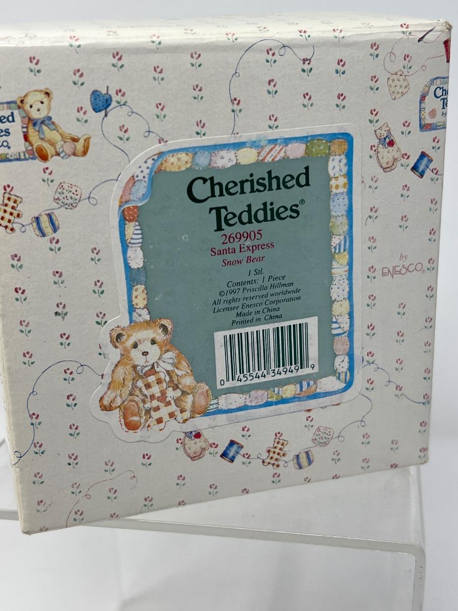 Santa Express Snow Bear, Enesco, Cherished Teddies, 3” tall Collectible Figure. 1997. Box.