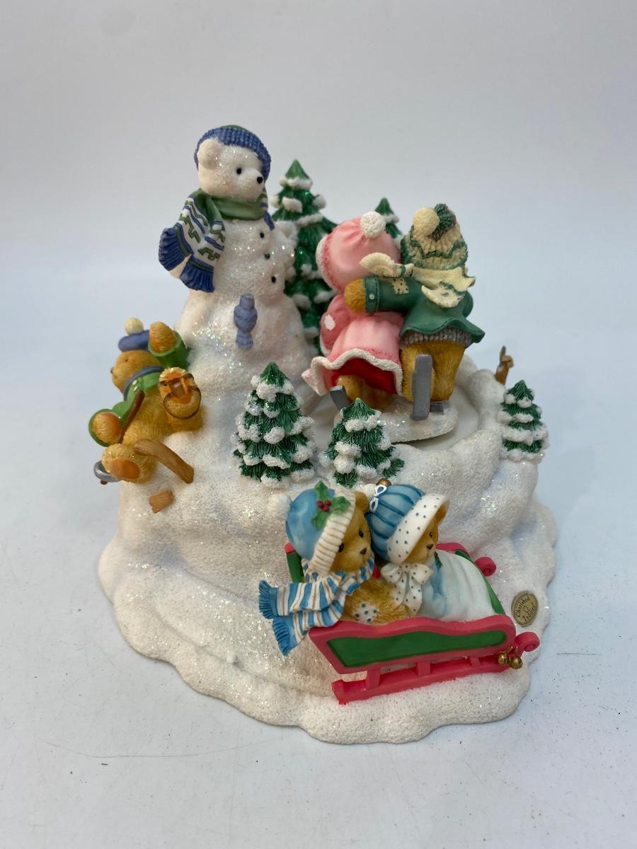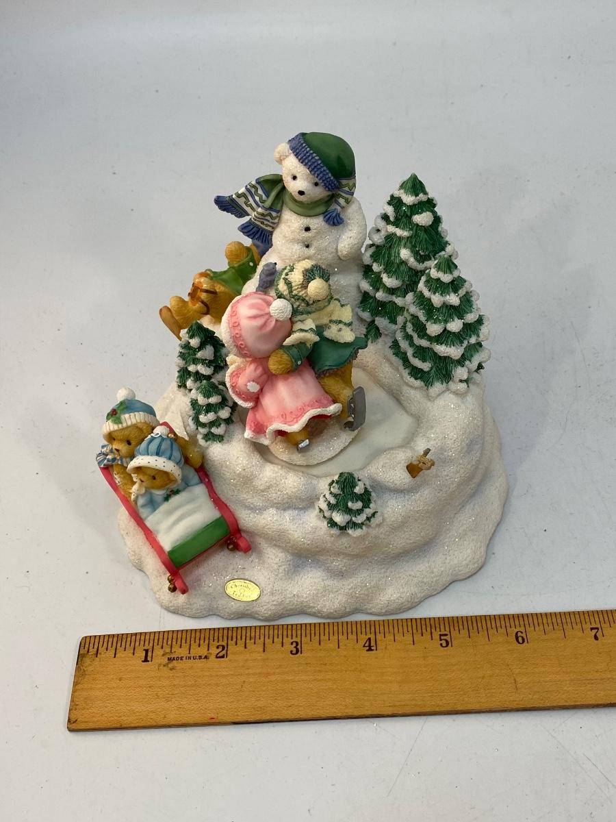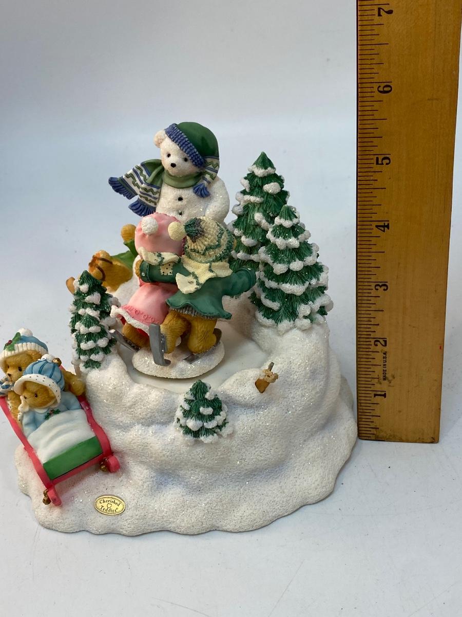 Cherished Teddies Winter Themed Music Box. The ice-skating bears move but music does not play anymore.
