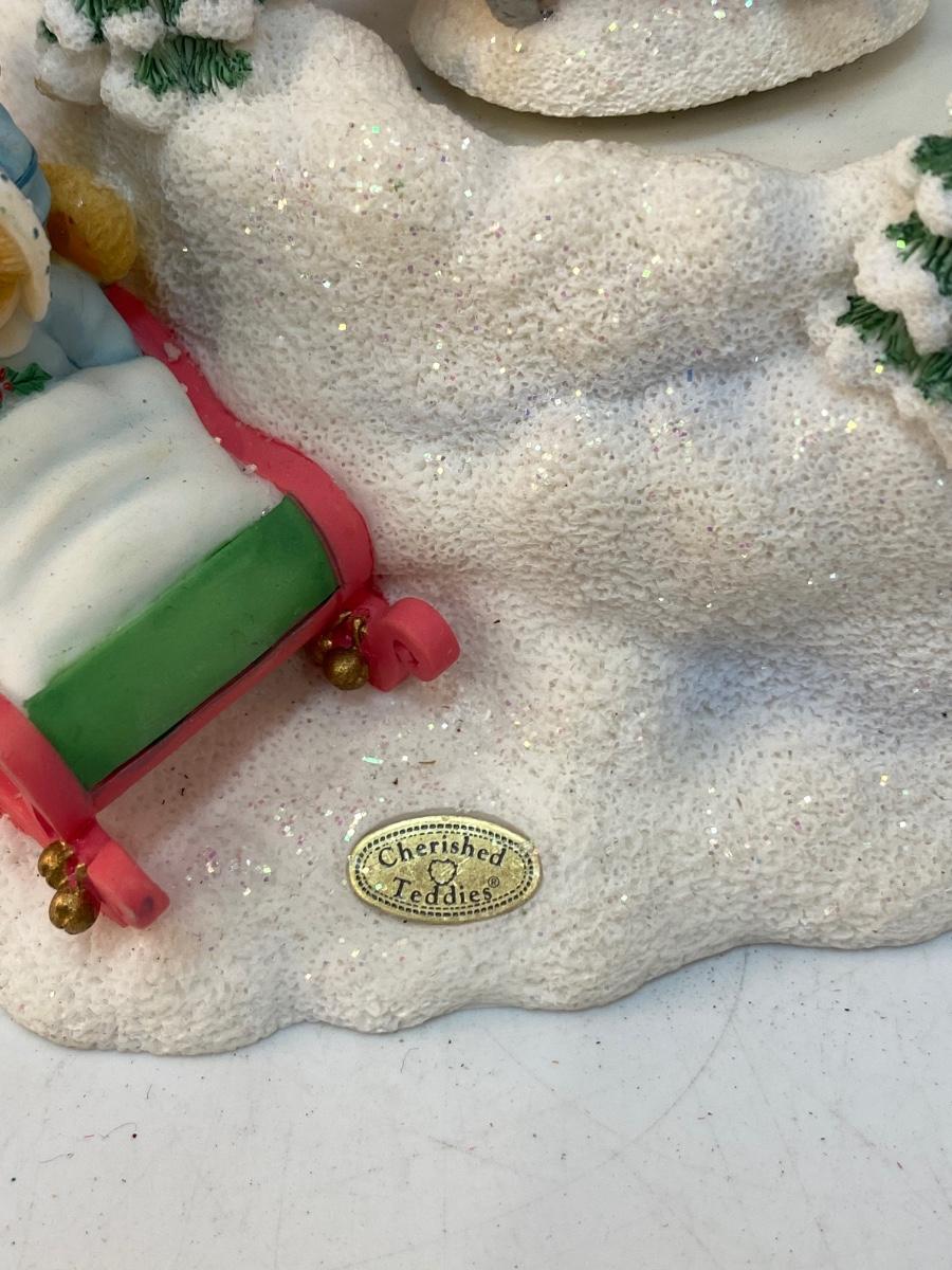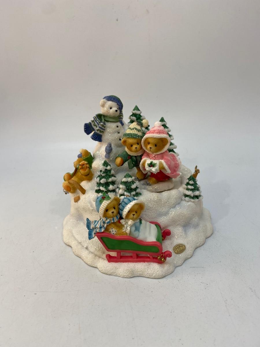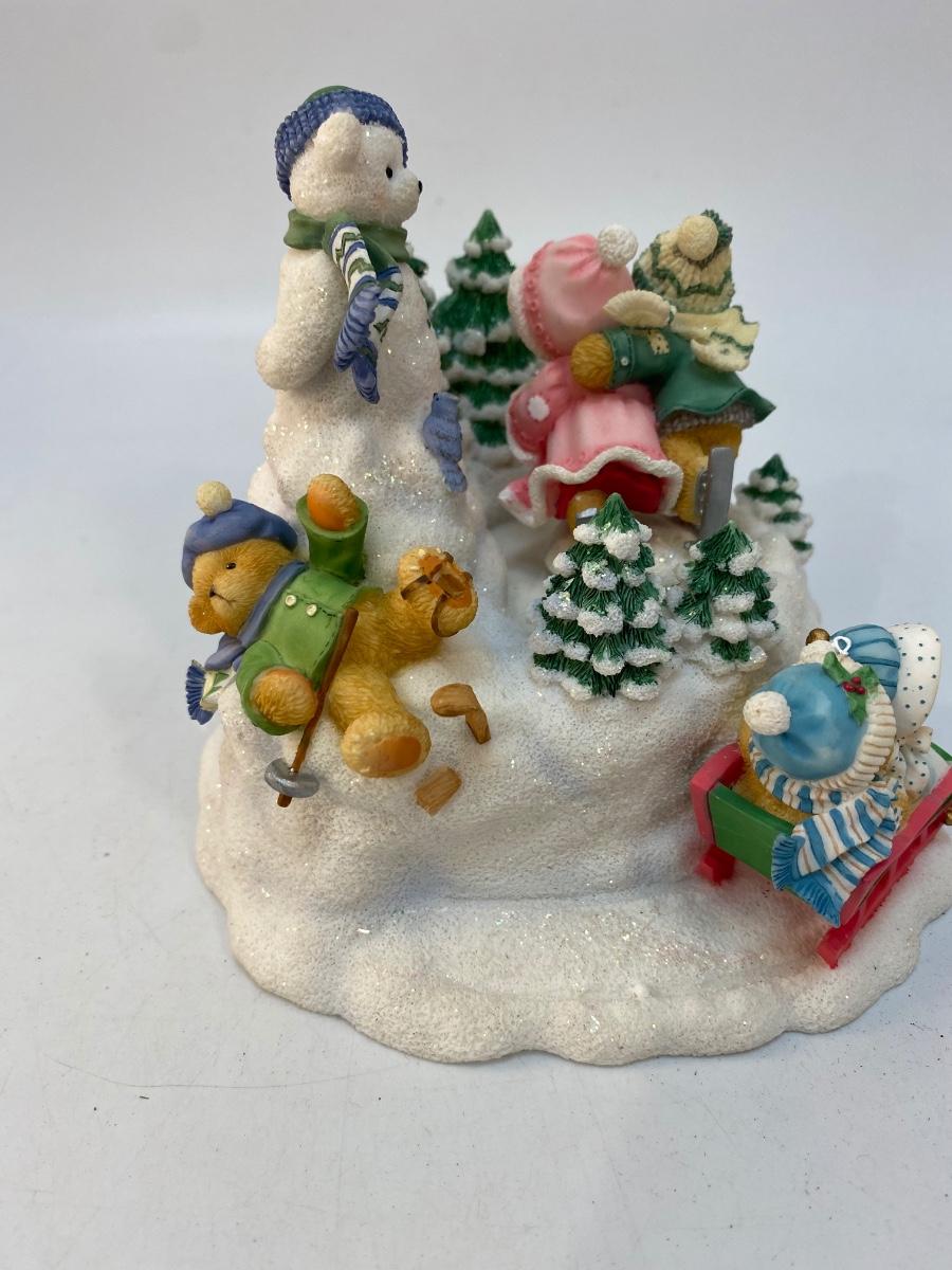 Cherished Teddies Winter Themed Music Box. The ice-skating bears move but music does not play anymore.