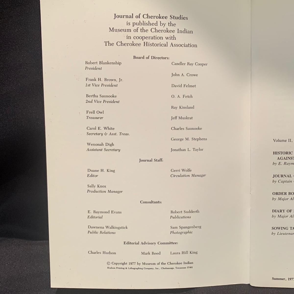Lot includes 29 journals of Cherokee studies, published by the Museum of the Cherokee Indians. Lot also includes the Story of the Cherokees from Earliest Origins to Contemporary Times by Thomas E. Mails. Please see photos for more details. Shipping available. Shipping can be costly. We suggest contacting our preferred local shipping provider, Postage Express, with dimensions and getting an estimate before bidding: (828) 670-5501 or postageexpress@yahoo.com.