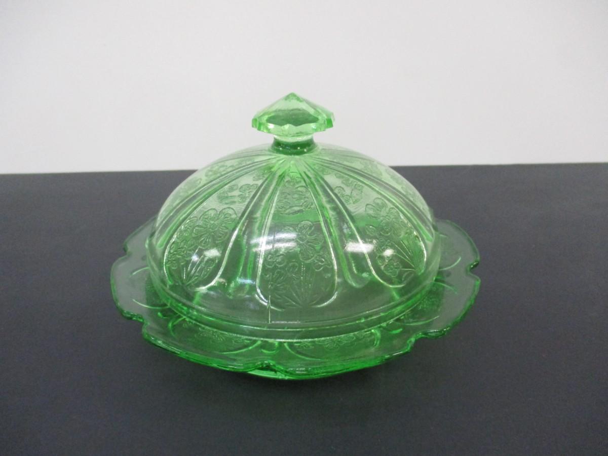 Cherry Blossom Pattern Glass Round Covered Butter Dish With Lid