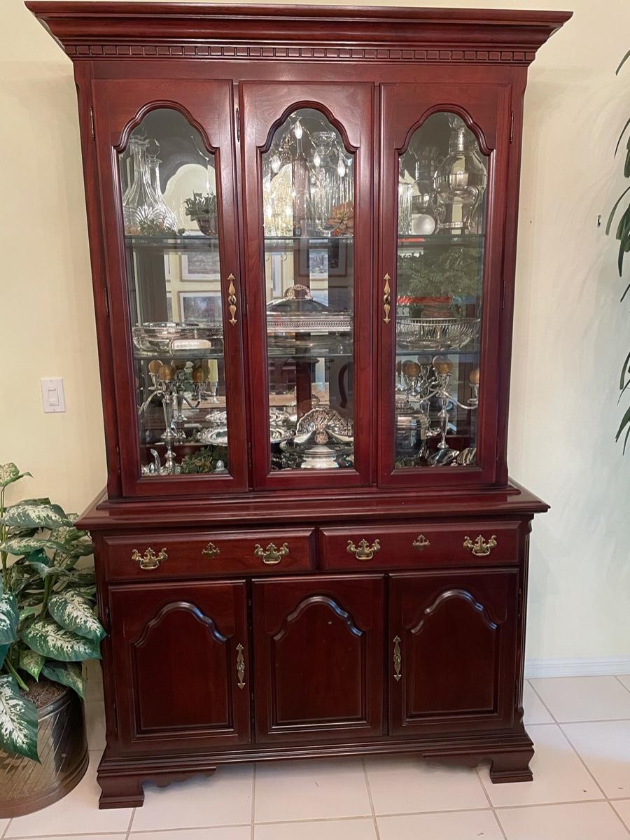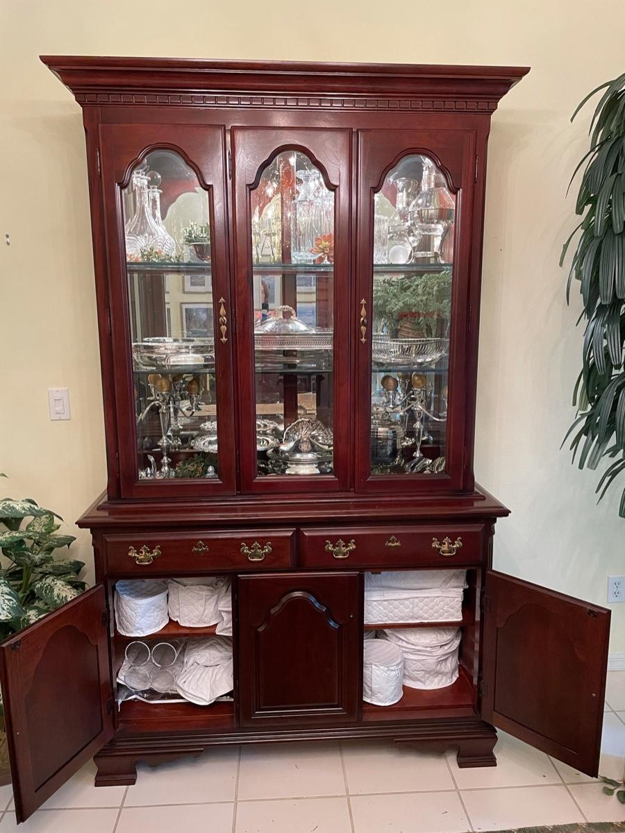 Queen Anne or Chippendale style china hutch in excellent condition. Interior light