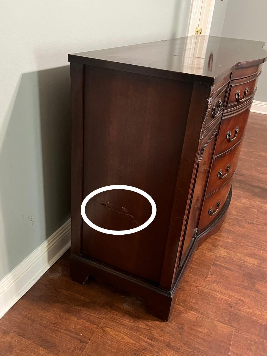*Crack on one end (see photos) ~ one knob needs a screw, knob is in drawer ~